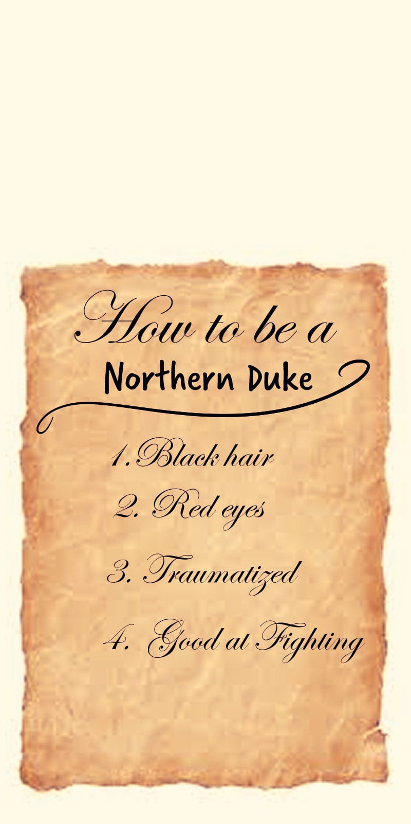 He is the Northern Duke in the country of Oshela. He has dark black hair, piercing red eyes, and... He is desperately trying to become the stereotypical “northern duke” from all of the romance stories he had read in his past life. The problem is that he has no idea what specific story he fell into. And he's not sure how long he can pretend to be someone he's not.