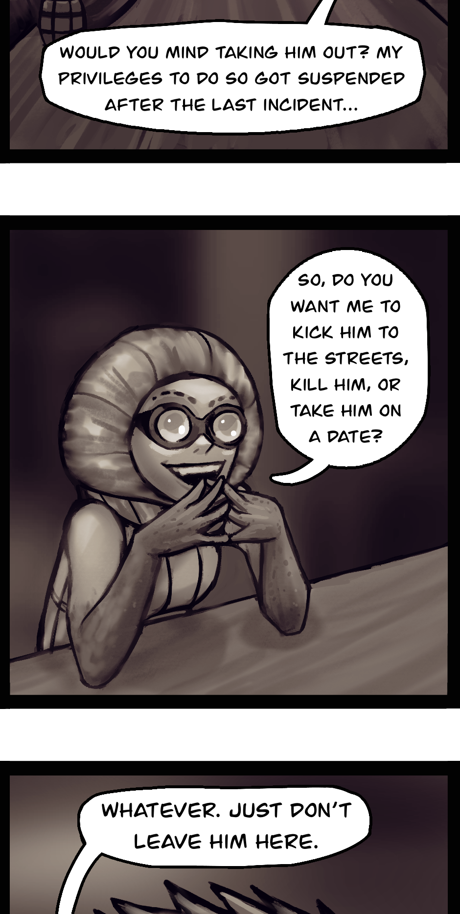 If anyone is interested, I edited the dialogue of the first episode because I got to the dialogue of the episode where it comes around and it needed to make more sense. So check that out if you like.