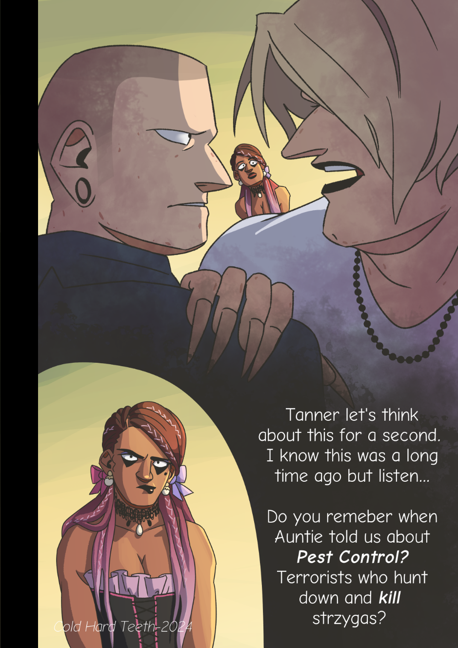 In 1998, a well known pop-star named Gordon Carnegie discovers he is a ferocious monster called a strzyga "stree-gah". This discovery upends his career, and leads him to begin a new life as a fiery goth idol. As his new career takes off, Gordon and his friends are drawn deep into a vast web of mystery, macabre, and murder. Perhaps being a strzyga carries more weight than extra dental fees.