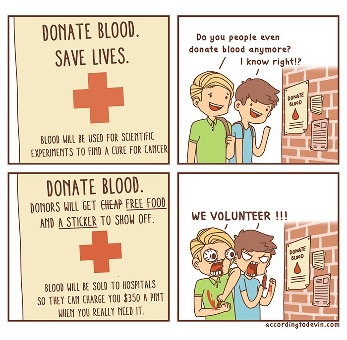 The things we do for food and stickers. One time, this lady made me feel so guilty because she was thanking me for donating blood and all I could think of was how yummy the Krispy Kreme donuts they gave out were going to taste in my mouth. I am a bad person :(
