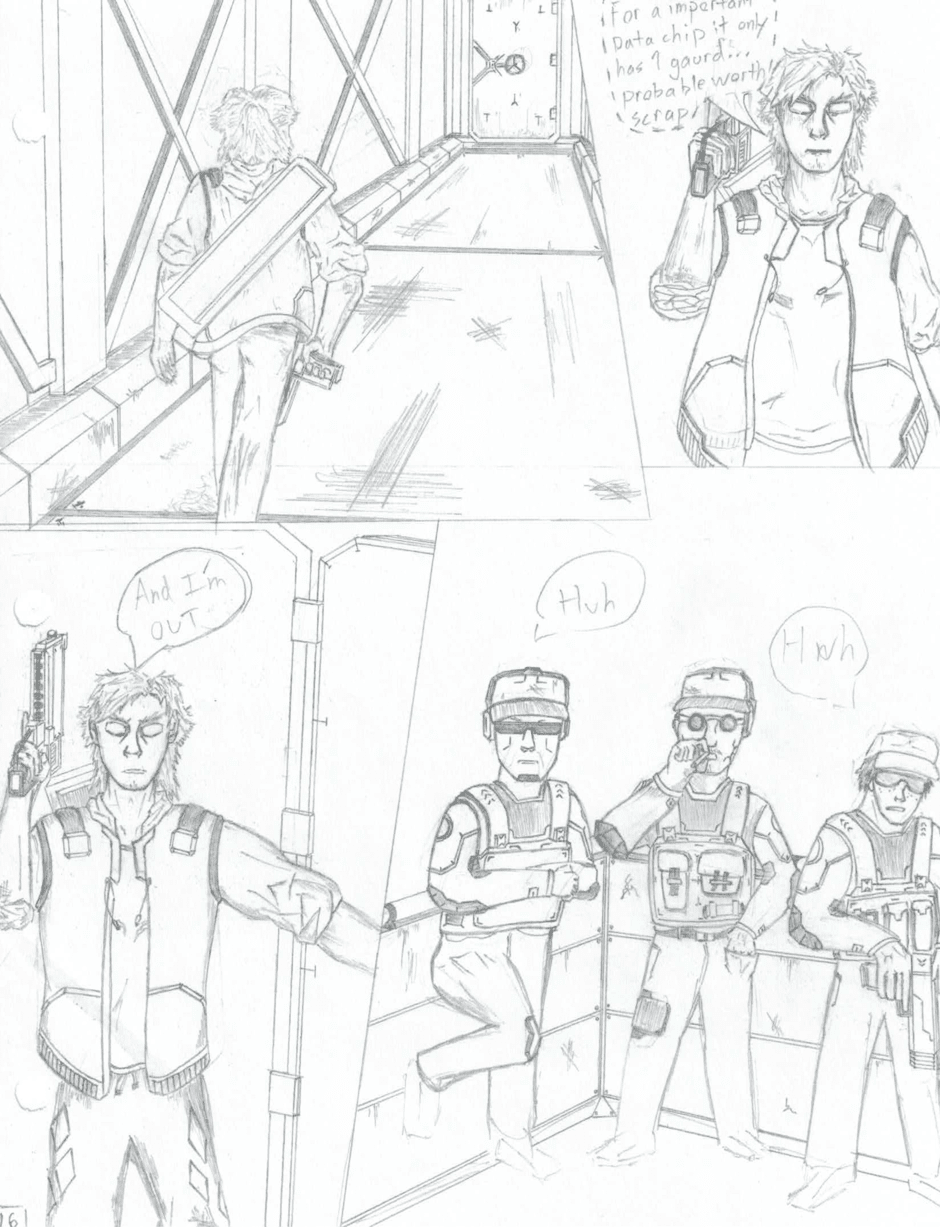 A view into the world of On The Edge showing Gray Vallazka taking on mission. This was created years ago; I was figuring out how to make comics and some drawings are unfinished and the story is only there is guide the pages. But I still wanted to share. The official On The Edge series is currently in production