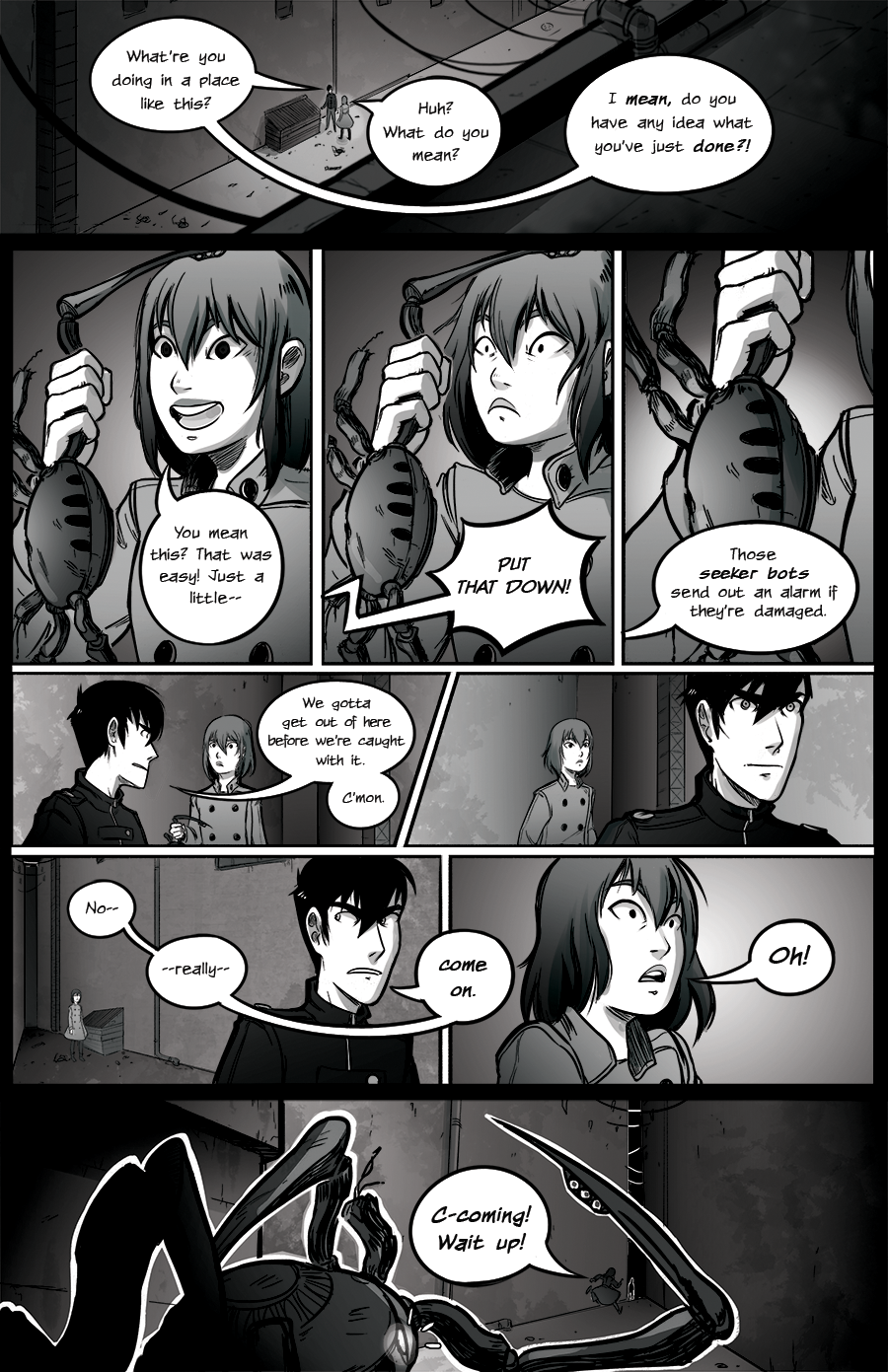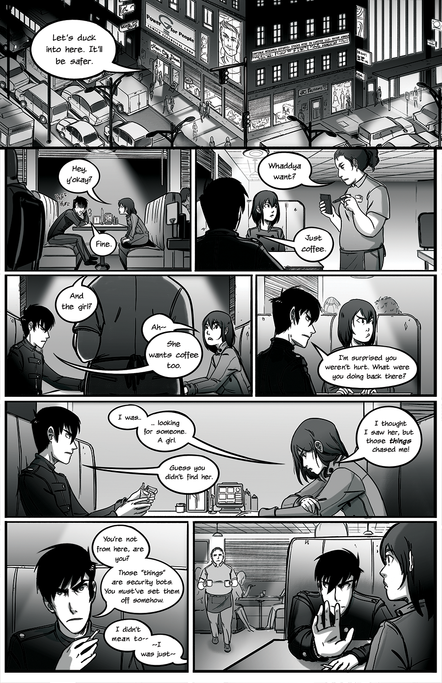I like that guy's guts O.o Obviously he knows that going against these bots is a bad thing, yet he helps her out! <3