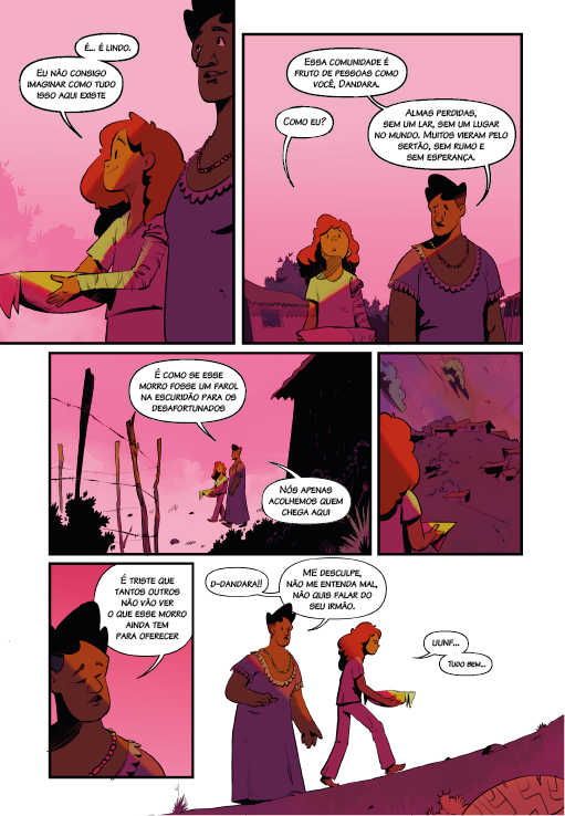 Após um longo tempo perdida no sertão, Dandara finalmente encontra um lar. Nessa nova comunidade, Dandara tem a oportunidade de viver uma vida tranquila enquanto enfrenta o luto, porém uma estranha criatura vem ao seu encontro com um pedido inusitado. Dandara agora precisa encontrar a justiça para ter seu irmão de volta.