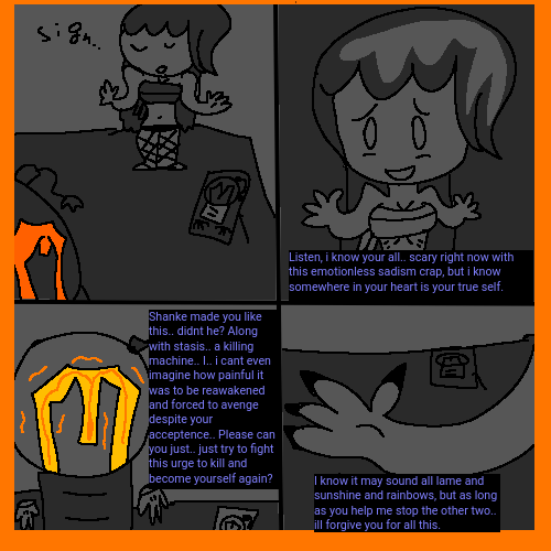 finally, chapter 2 complete. i hope your happy with this ending tbh, i genuinely tried to fix that damn stasis stuff. Im just saying the next chapter is a bit... uhhhh there a cat who likes bowling balls theres your vague teaser nerd