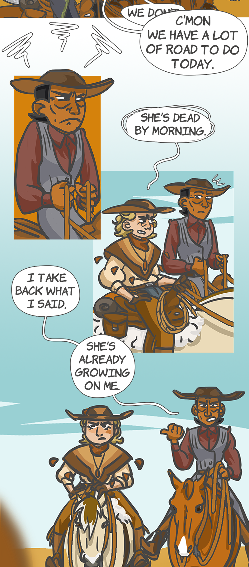 In a land far far away, magic is fading and the world is evolving fast. In this dusty west, a strange party is on a ride to find a dangerous wanted man. But they will stumble on a lot, and this quest might be of some greater kind than what they expected. WFW is a queer story set in a western / wild west fantasy world.