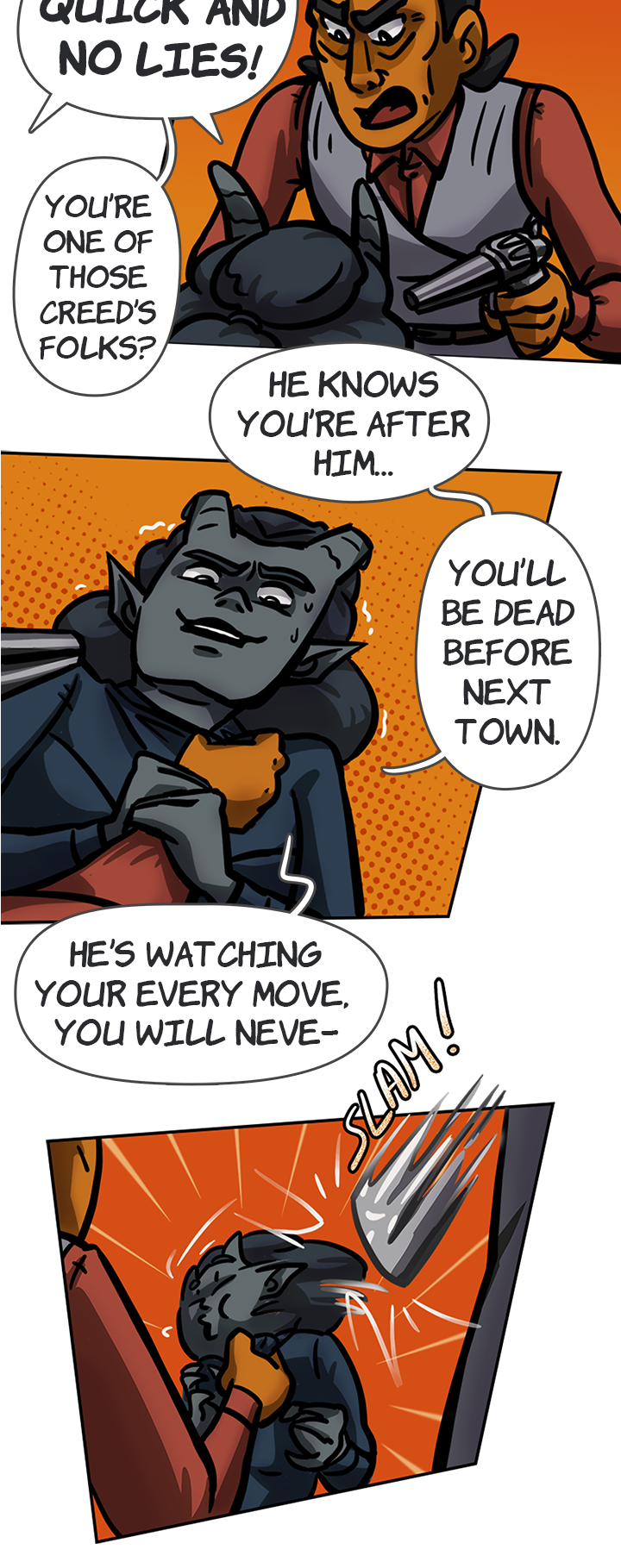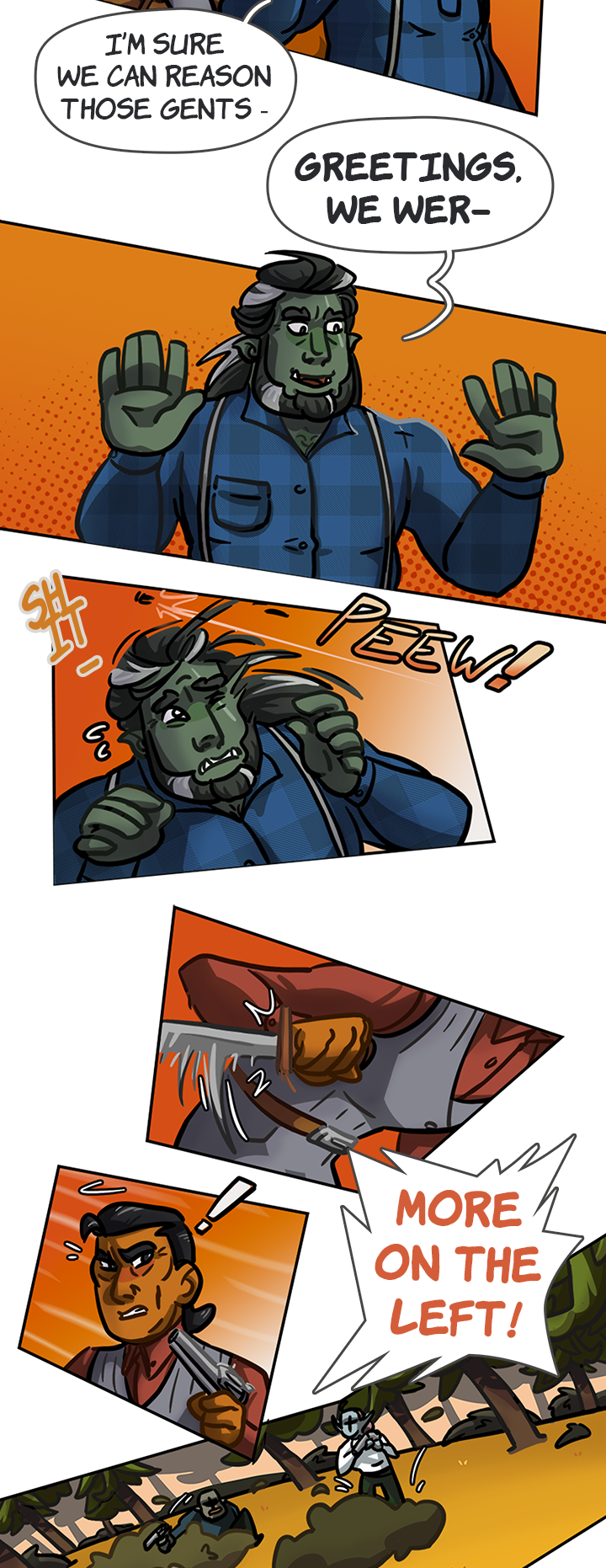 Wow this action!! And I love the orc guy just folding two people like that