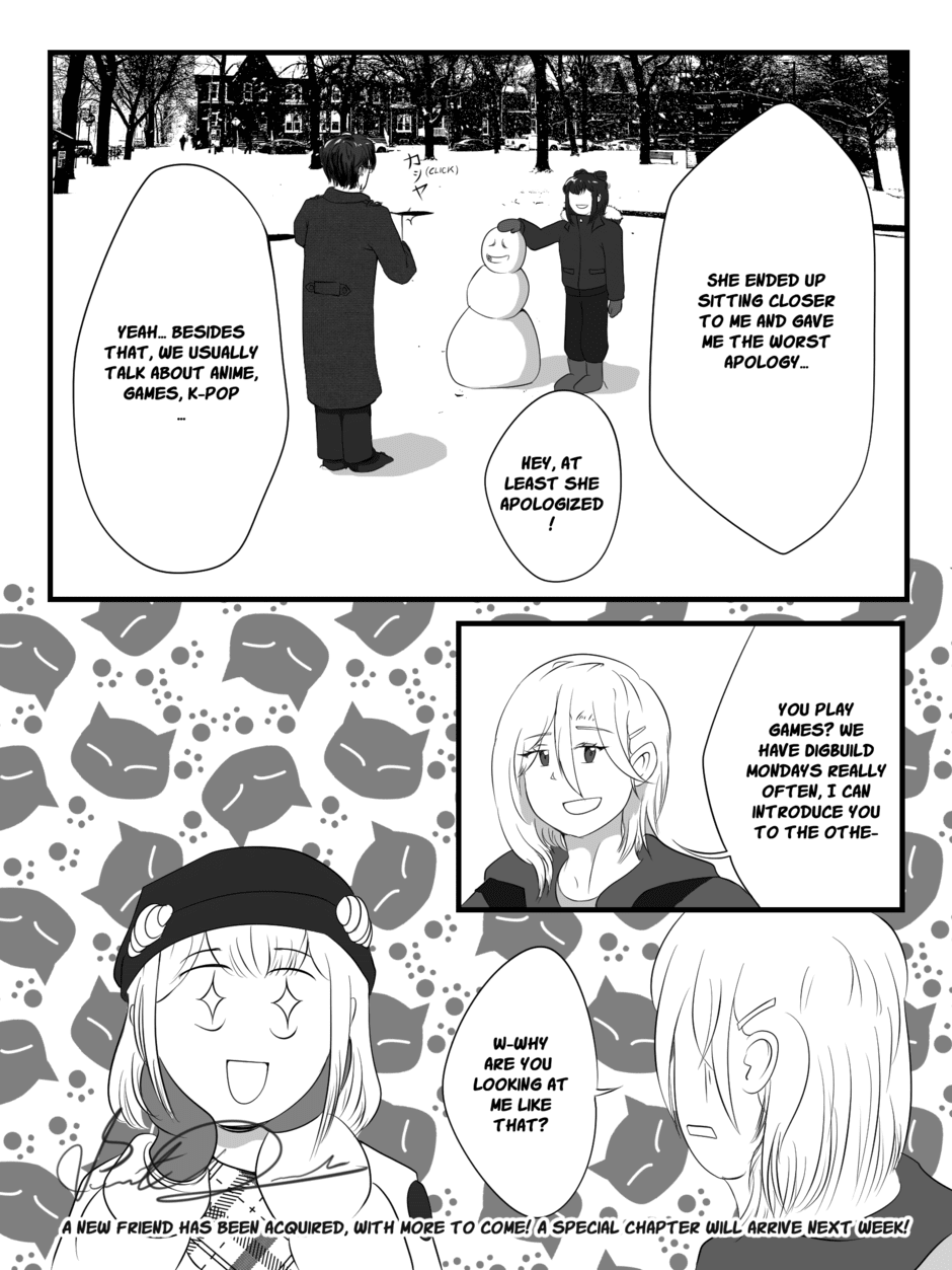 Umiko is confident that her first year at the University of Toronto will be the start of one of the best years of her life, but that dream is shattered a mere week into the semester! Hungry, isolated and drowning from school work, she accidentally befriends Takuya, a soon to be graduating upperclassman who's willing to help Umiko make friends. With unexplainable shenanigans that seemingly sabotage her GPA, will Umiko be able to overcome the first year blues?