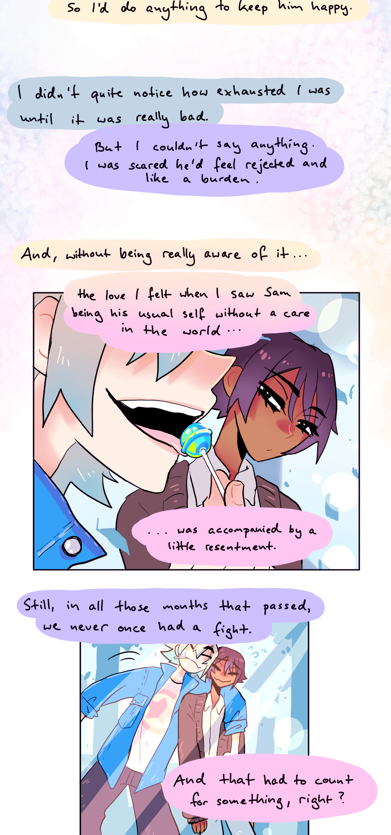never having a fight sounds like not bringing it up and being clear with boundaries it’s possible that bringing it up more firmly would’ve caused tension, but the poor guy is working his ass off wayy too much!