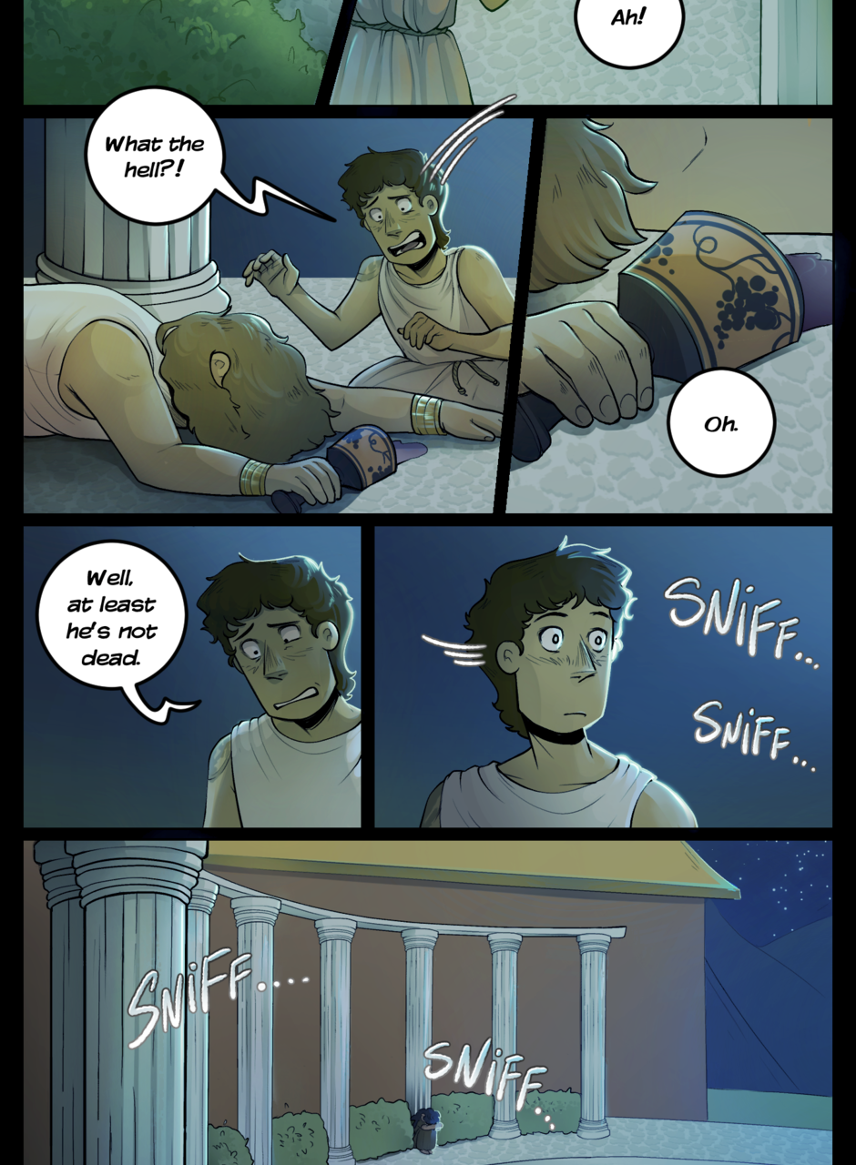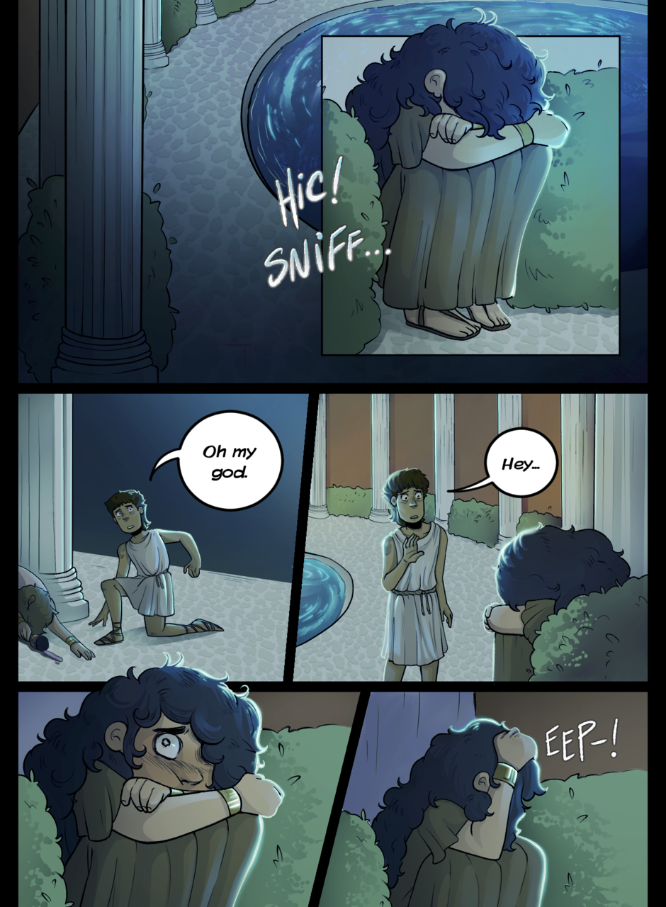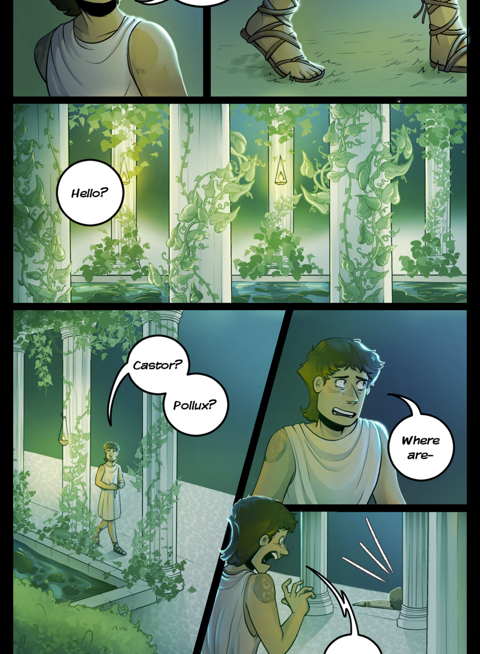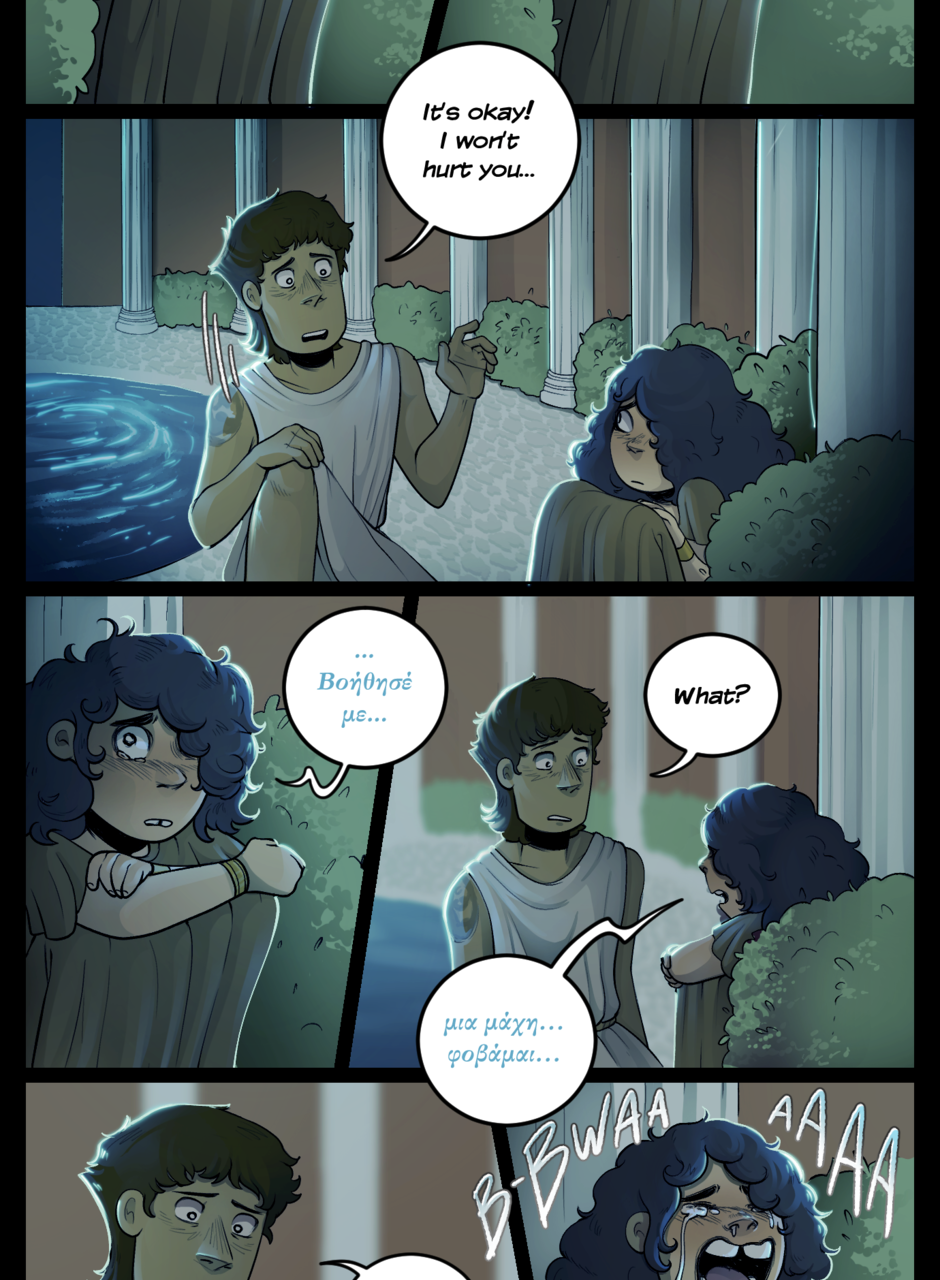 When mythology-obsessed Jamie Lago accidentally finds himself in a world where all of his most beloved characters are no longer confined to the pages of his books, he’ll have to find a way to get back home, making unlikely allies… and potentially deadly enemies. Follow Jamie on an adventure through the bustling world of Fictia, where mythological folk live together under the reign of the mysterious Queen Myth. Updates every 12th of the month!