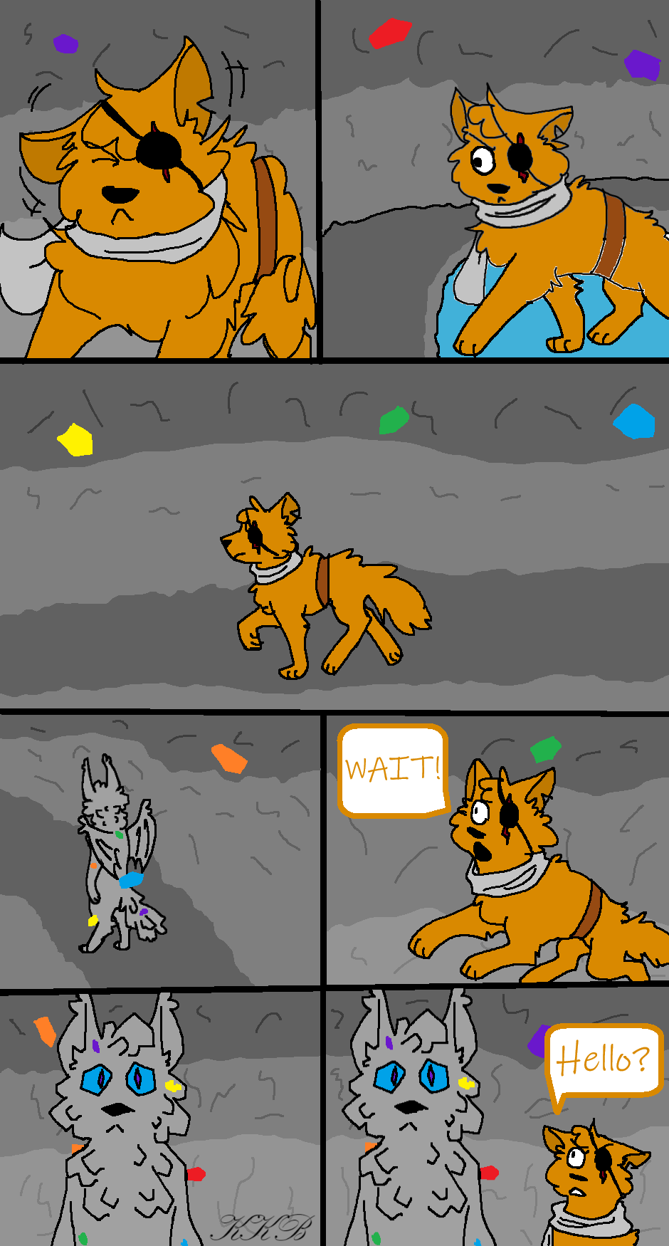 Zaphora, after falling down a hole, spots a crystal dragon and talks to him.