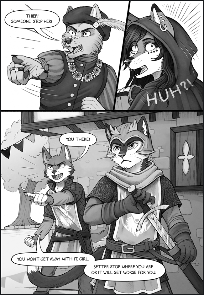 I'm starting a new black and white graphic novel based in my universe. The story takes place in a medieval fantasy world and follows the journey of three protagonists who are anthropomorphic animals. Please keep in mind that this series will contain mature scenes - violence, blood, self harm, etc. I work on the project in my free time so any financial support is very appreciated.