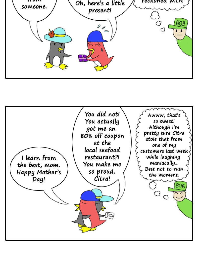 Follow the everyday life of a red penguin, Citra C.