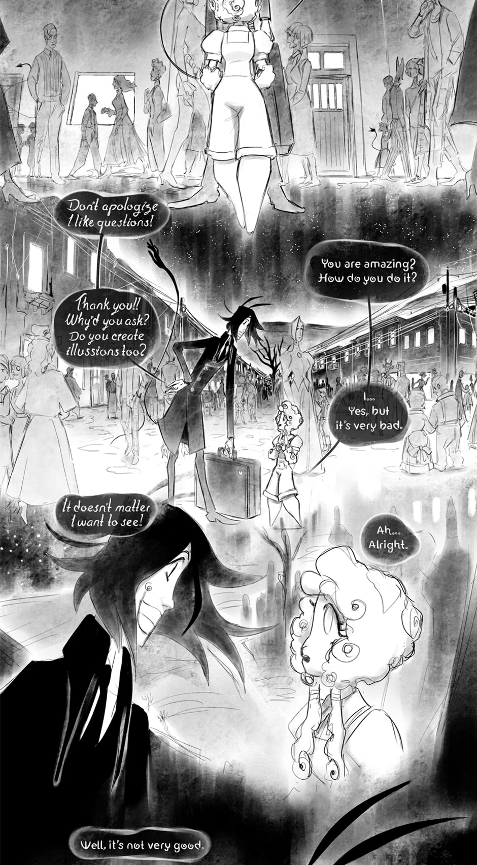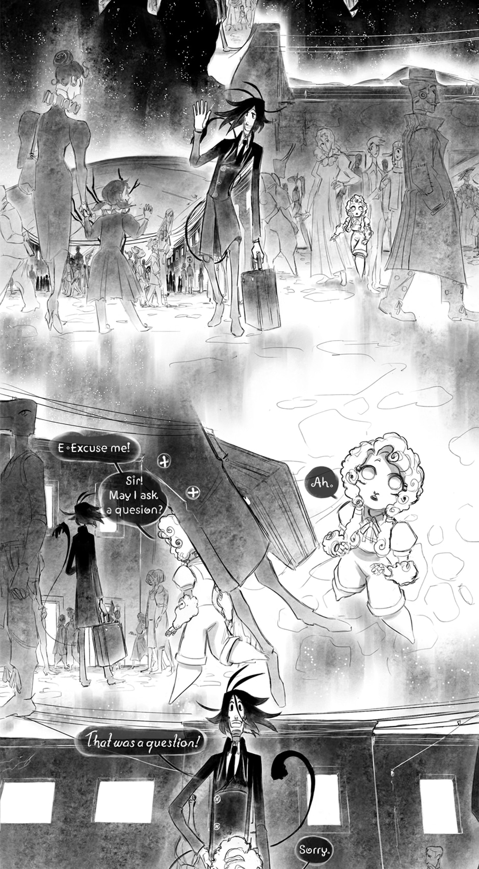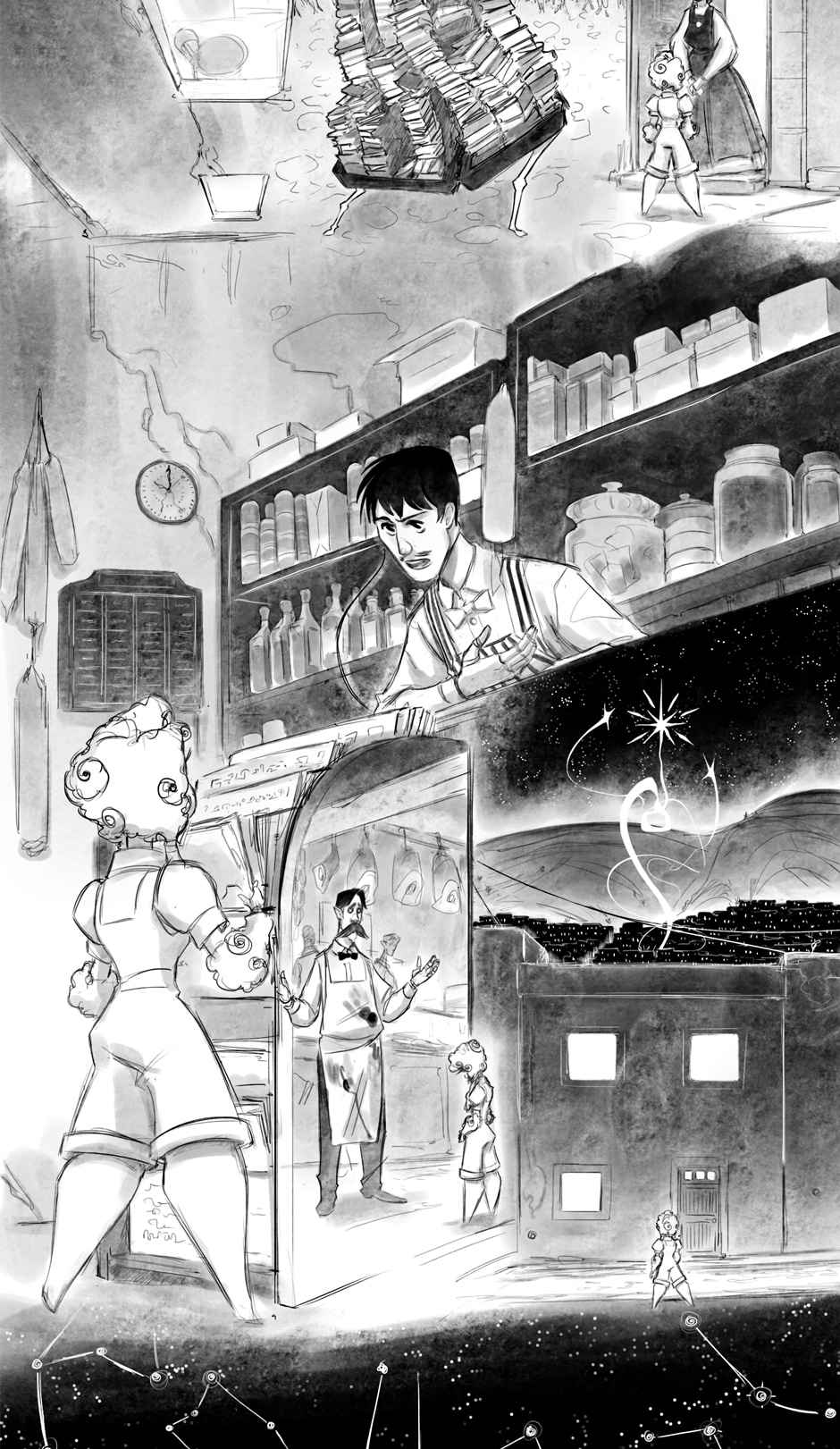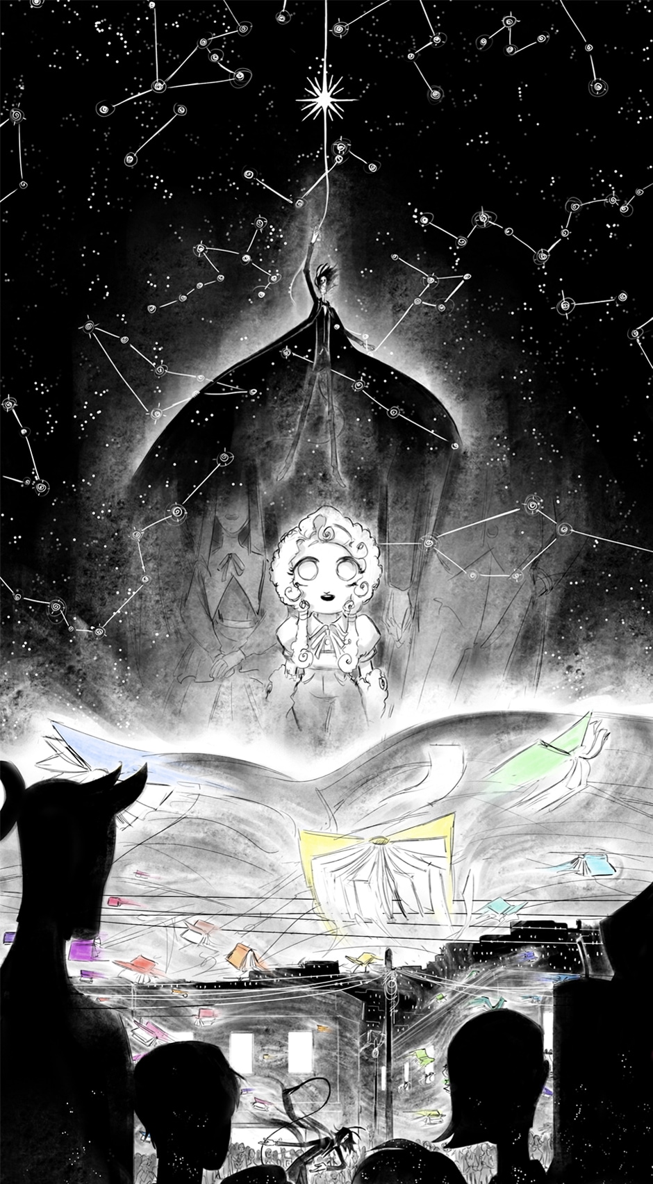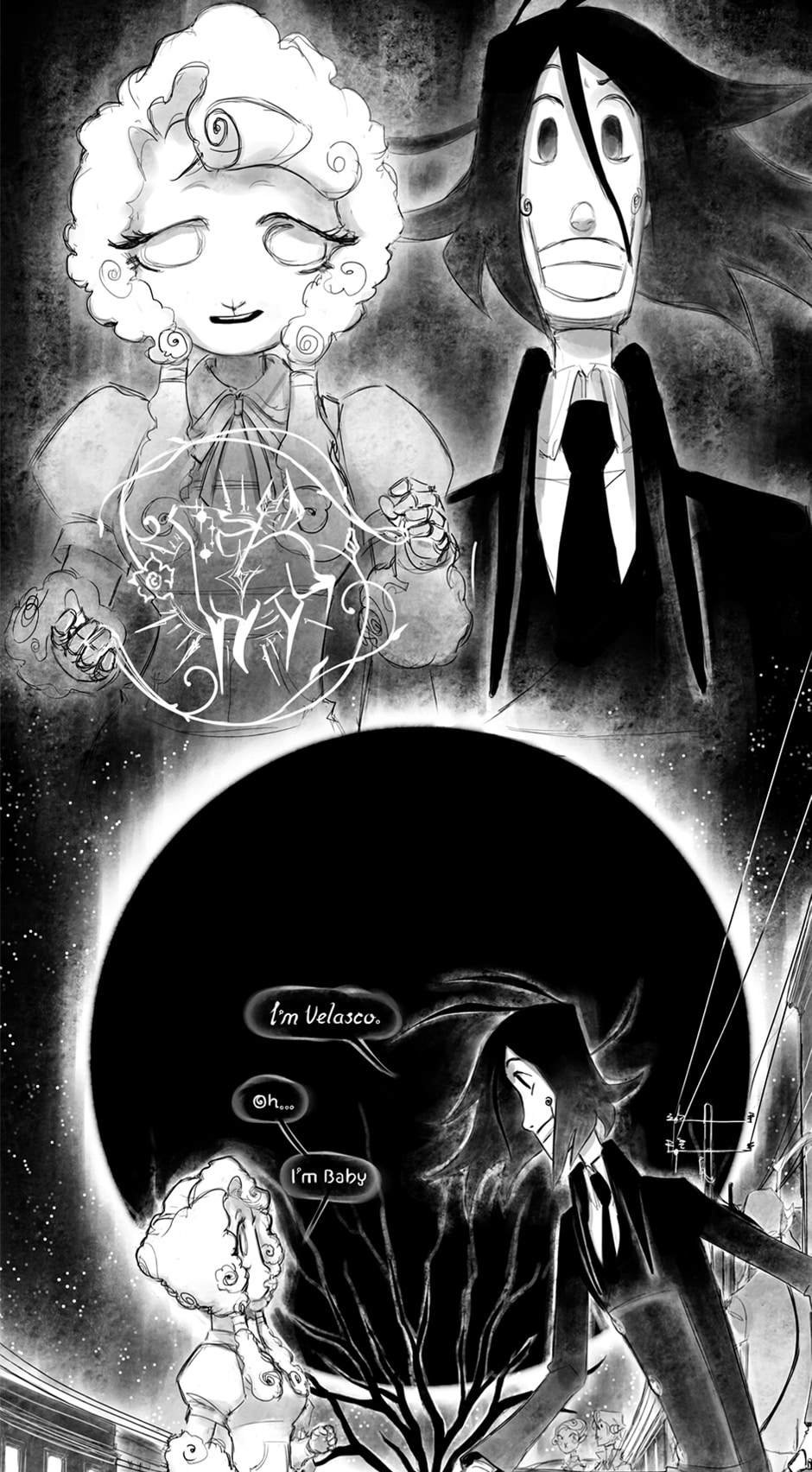 Under the never ending night and in between the desolate desert, among living and breathing puppets, two lonely souls find solace with each other, however will that be enough with the looming darkness and sorrow over the skies.