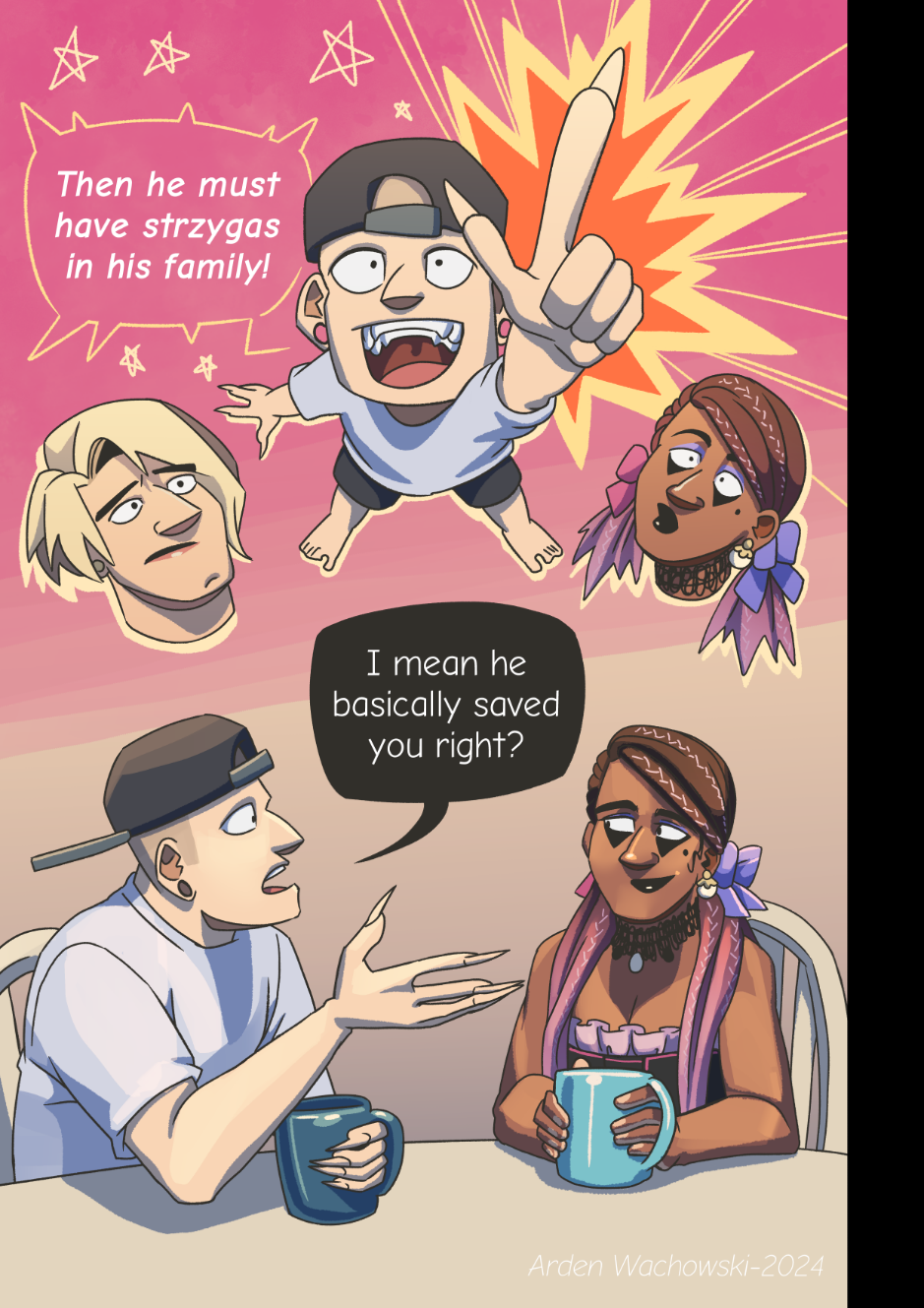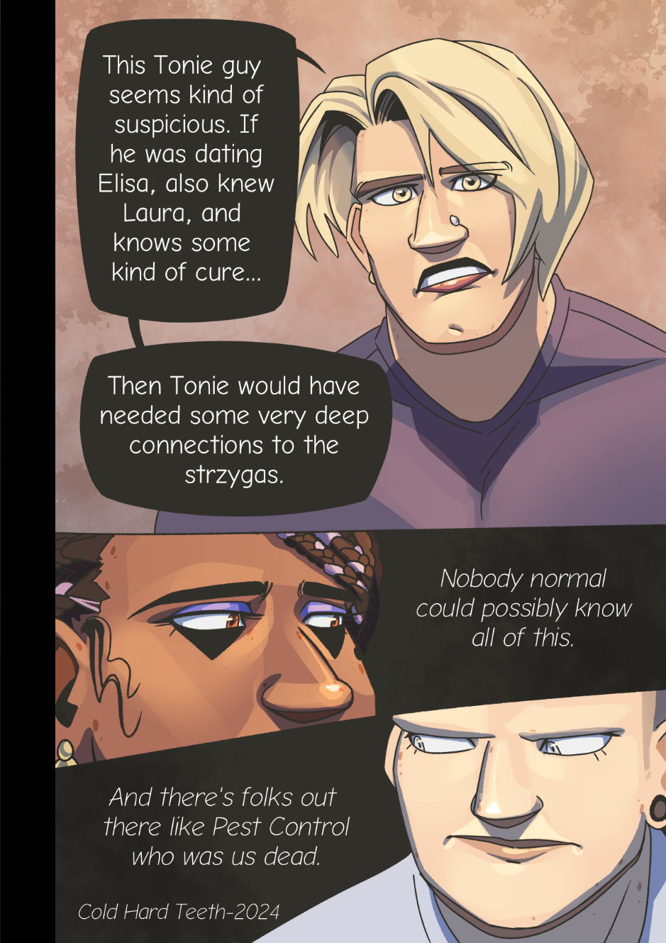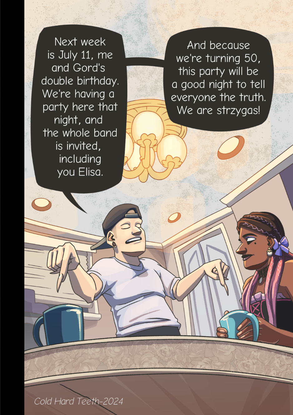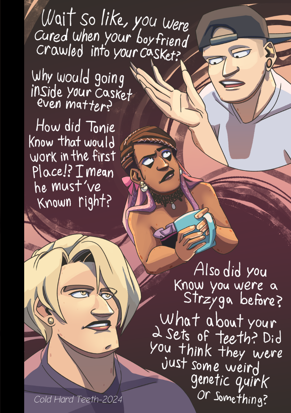 In 1998, a well known pop-star named Gordon Carnegie discovers he is a ferocious monster called a strzyga "stree-gah". This discovery upends his career, and leads him to begin a new life as a fiery goth idol. As his new career takes off, Gordon and his friends are drawn deep into a vast web of mystery, macabre, and murder. Perhaps being a strzyga carries more weight than extra dental fees.