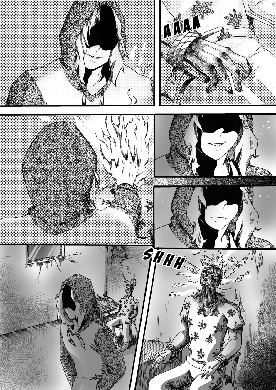 I love the expressions. Something tells me they got bored after burning that person's face off. I wonder what they plan on doing next? Keep up the awesome good ( ˶ˆᗜˆ˵ )