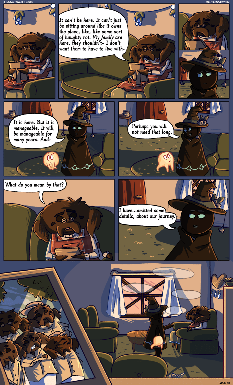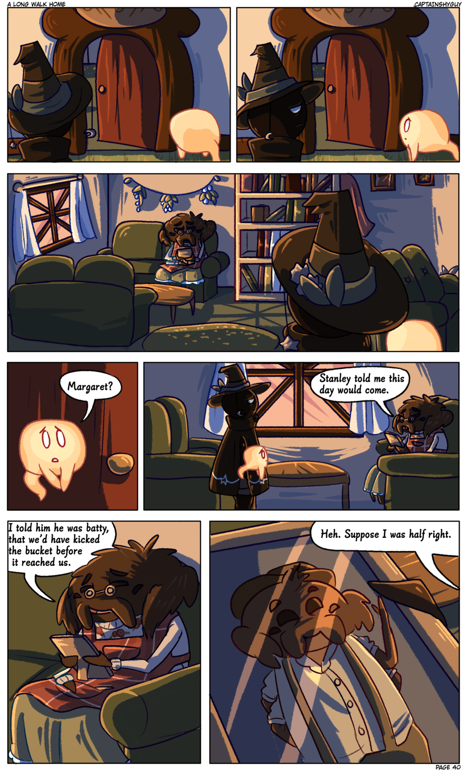 i love the lighting in this scene!! the dark shadows really give that feeling that the day has reached its end- and it's been a wild day for our heroes here.