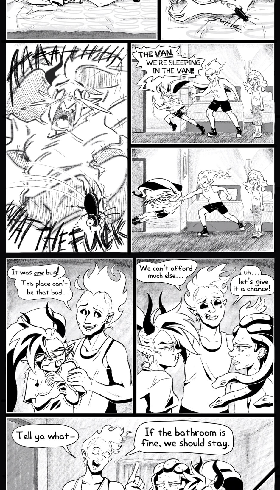 This comic is intended for young adult readers. There is swearing, mention and occasional use of alcohol and drugs, as well as sexual inuuendos and contexts. Please take note of these warnings before reading this comic.