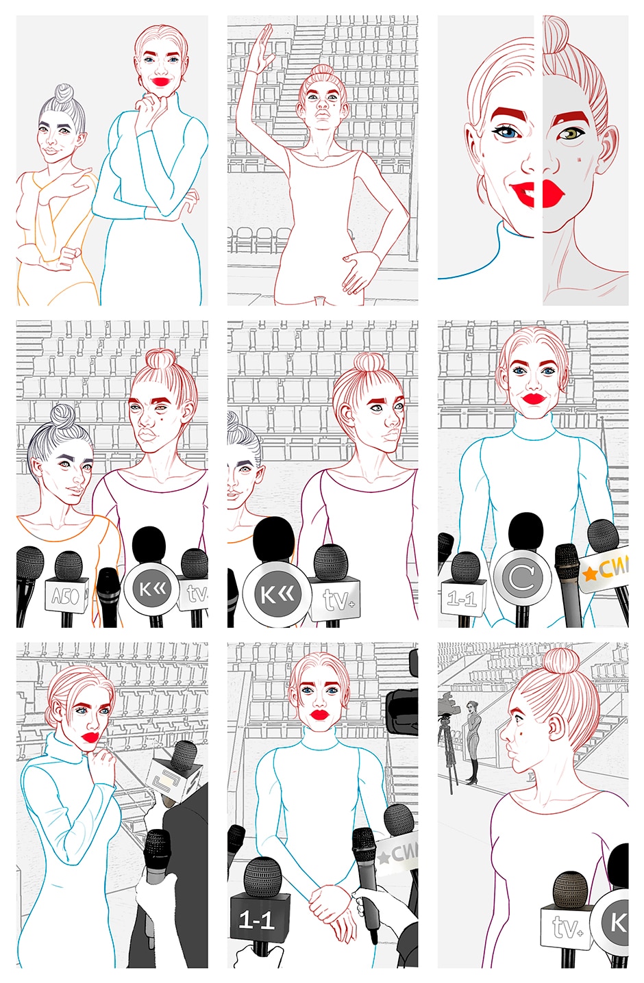 "Mental Gymnastics" is a comic book about gymnast Eva Esina, whose life changes dramatically after the tragic death of her mother, and part-time coach, Ksenia. Eva, who did not know life without sports, is trying to understand who she is, what happened to Ksenia and how white tulips are connected with this. In this story, I wanted to show my city, talk about stalking and accepting death. Now, despite these difficult topics, the comic has become escapism for me, because in it I can show Kharkiv as I remember it.