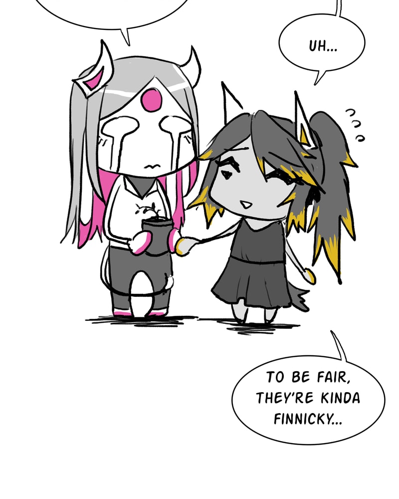 OOH Ena looks sick, if her non-humanoid shape is like the creatures in the first panel (from the first episode), does that mean Carrion's looks like the second panel with the yellow? She's even got the eye-thing and the horns!