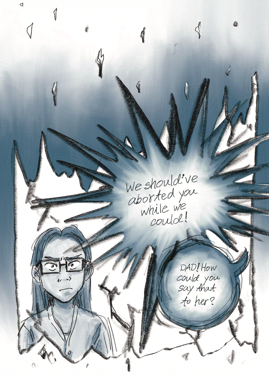 A graphic memoir that features Inkwell, a character who represents the most emotional, traumatized, and sometimes subconscious parts of me. With him, I delve into my tumultuous relationship with my father and the impact of a painful break-up, exploring how the past influences my current struggles with moral perfectionism, care, and activism.