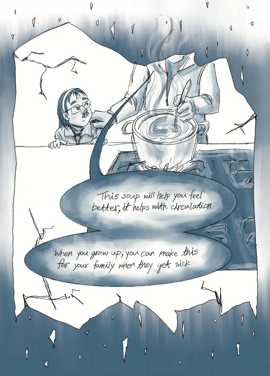 Through Lessons from Inkwell, I learn to face my father’s contradictions alongside my own, as I weave my past into a new vision of my future. In the chapters currently being released, I show my journey towards accepting my humanity—contradictions and all. This will unravel into future uploads, where I will be seeking a new understanding of care and activism.