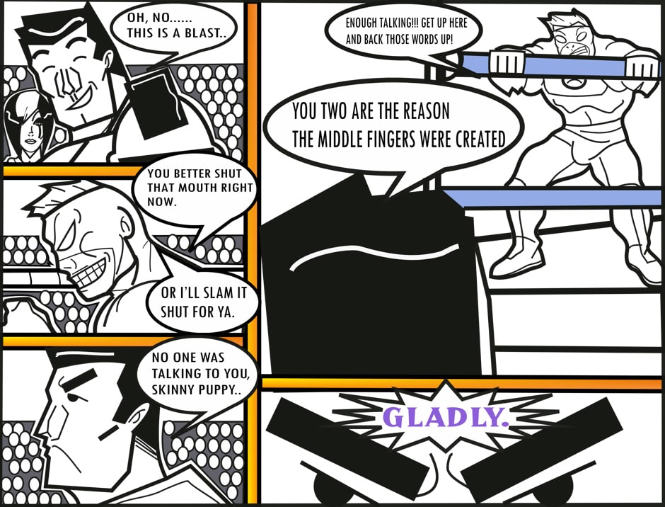 AFTER ALL THE RECENT CHAOS HAPPENING IN HEROTOWN, B.P.D. DECIDE TO TAKE THE NIGHT OFF AND WATCH LIVE WRESTLING.. SORT OF.