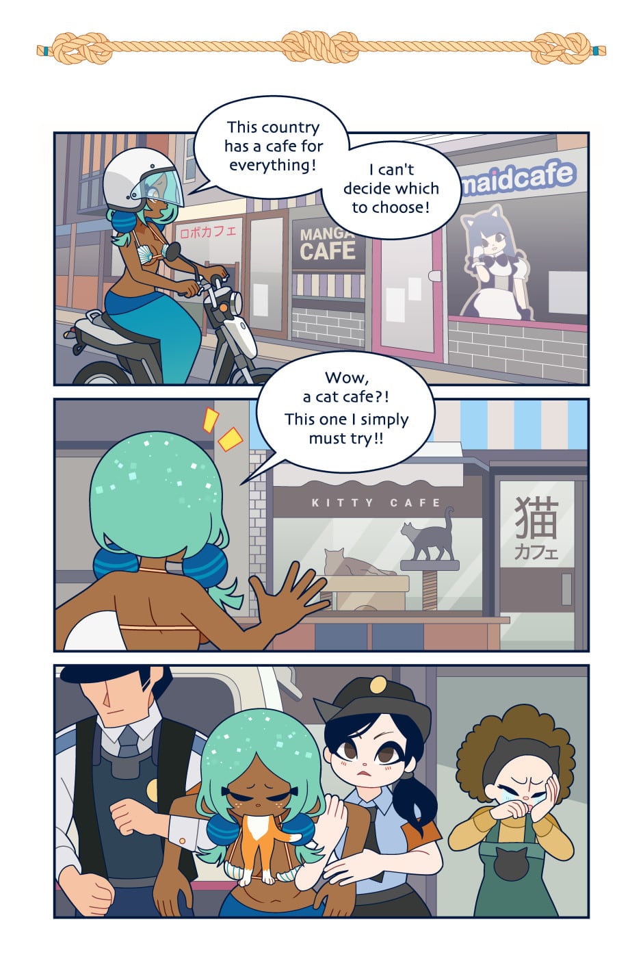 She missed the point of the cat cafe.....good thing she didn't try to eat maids XD