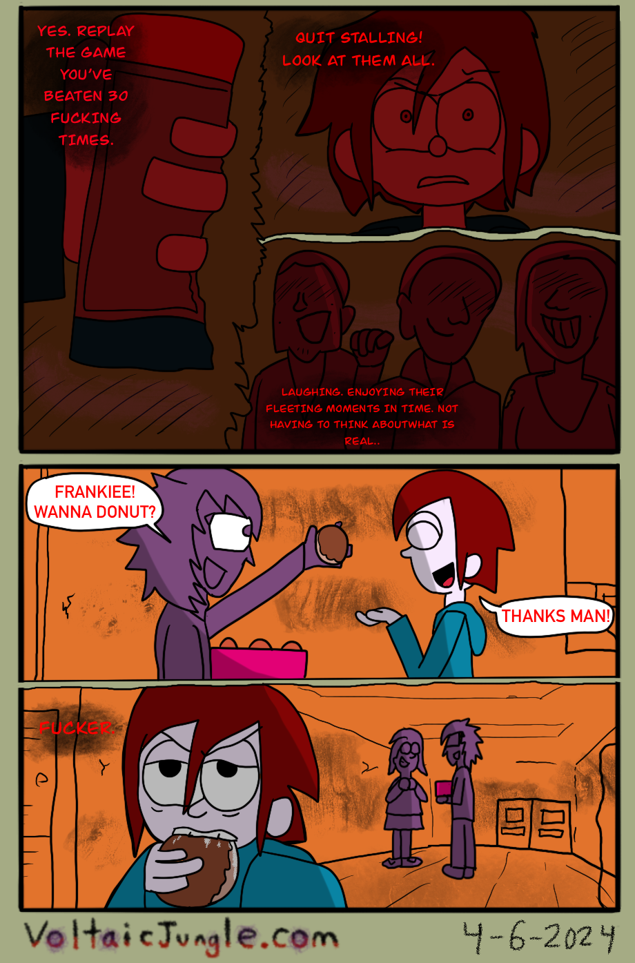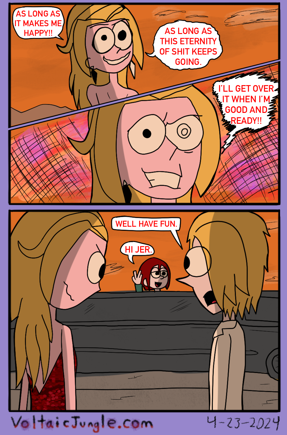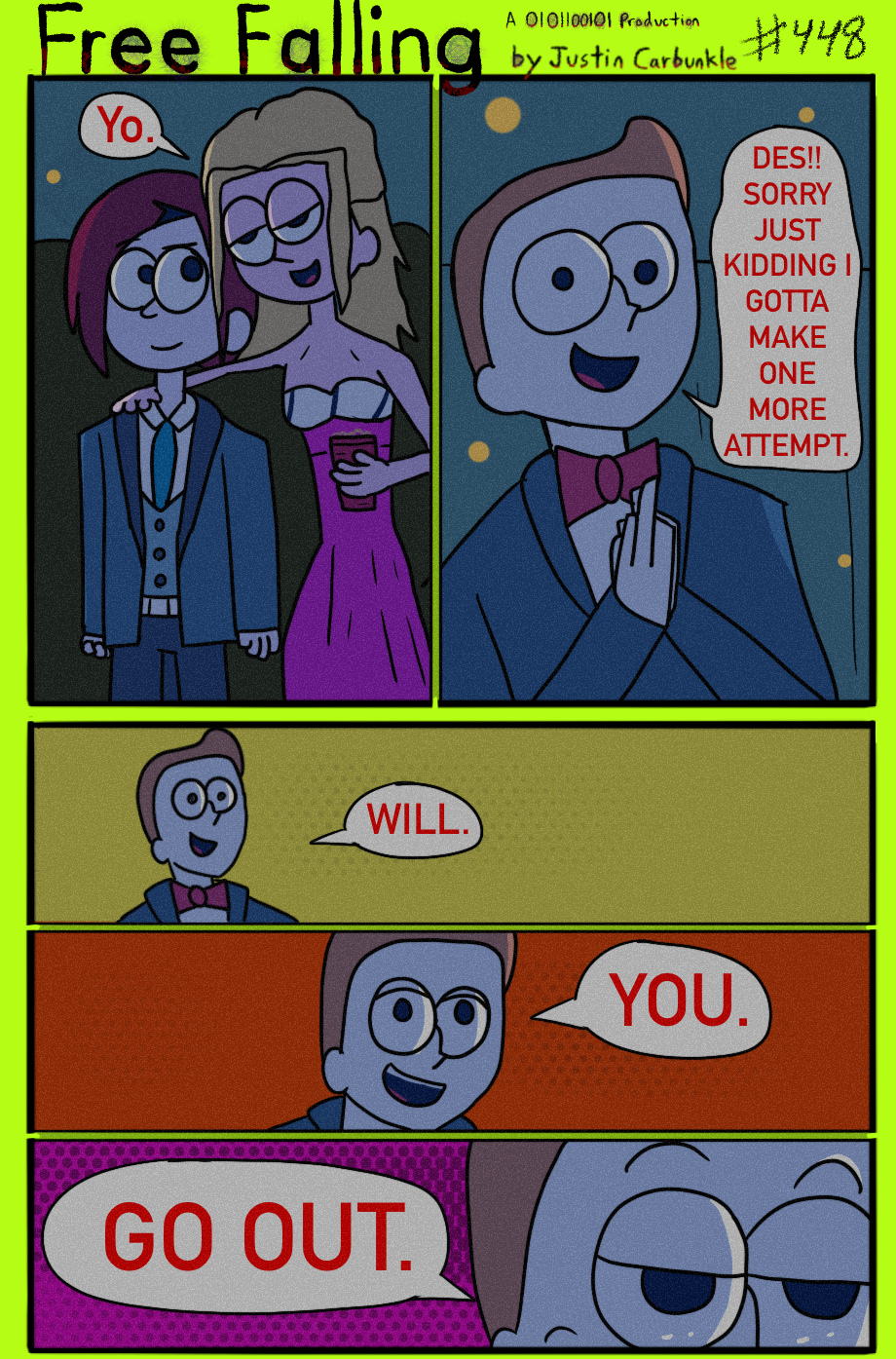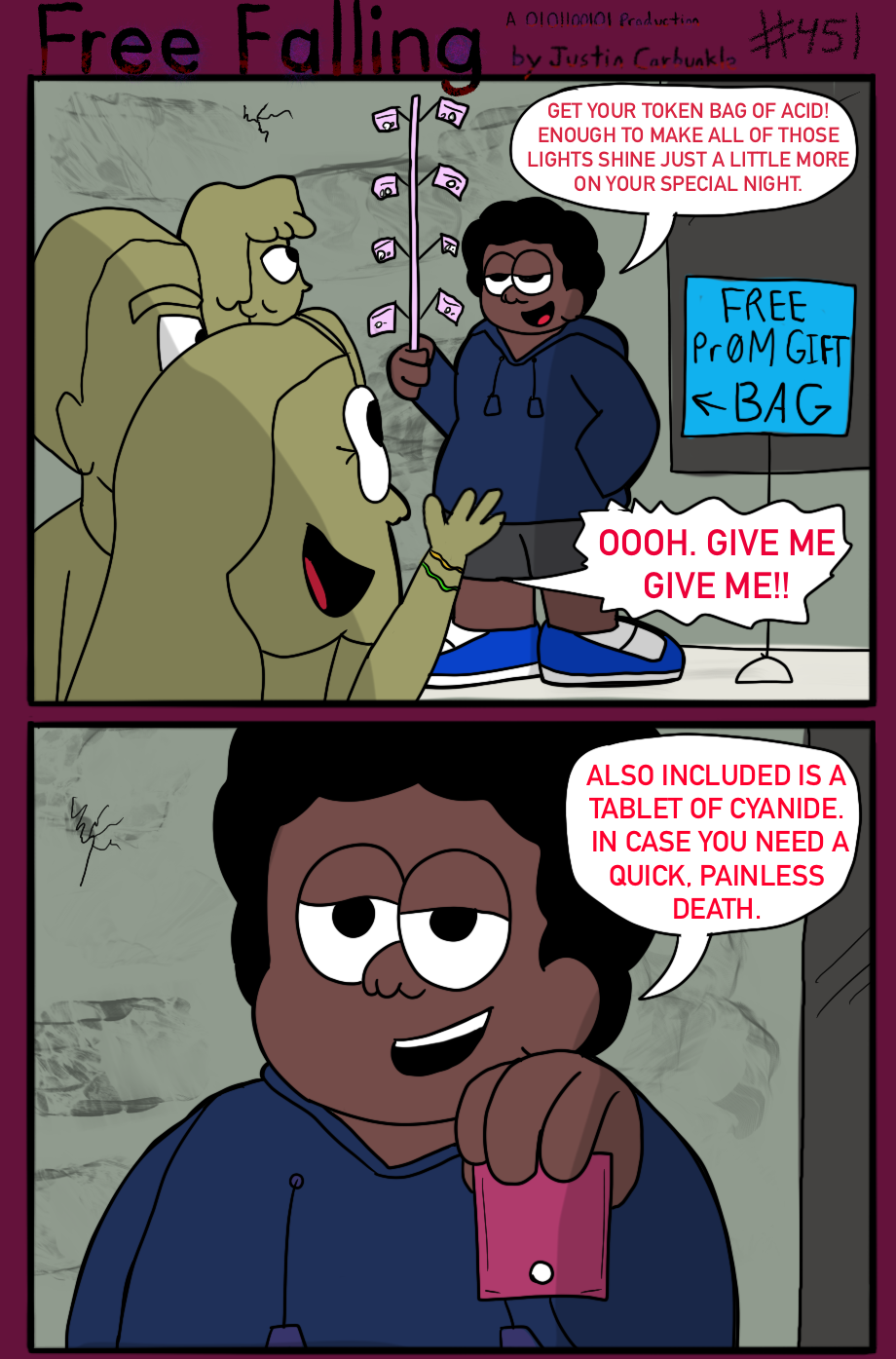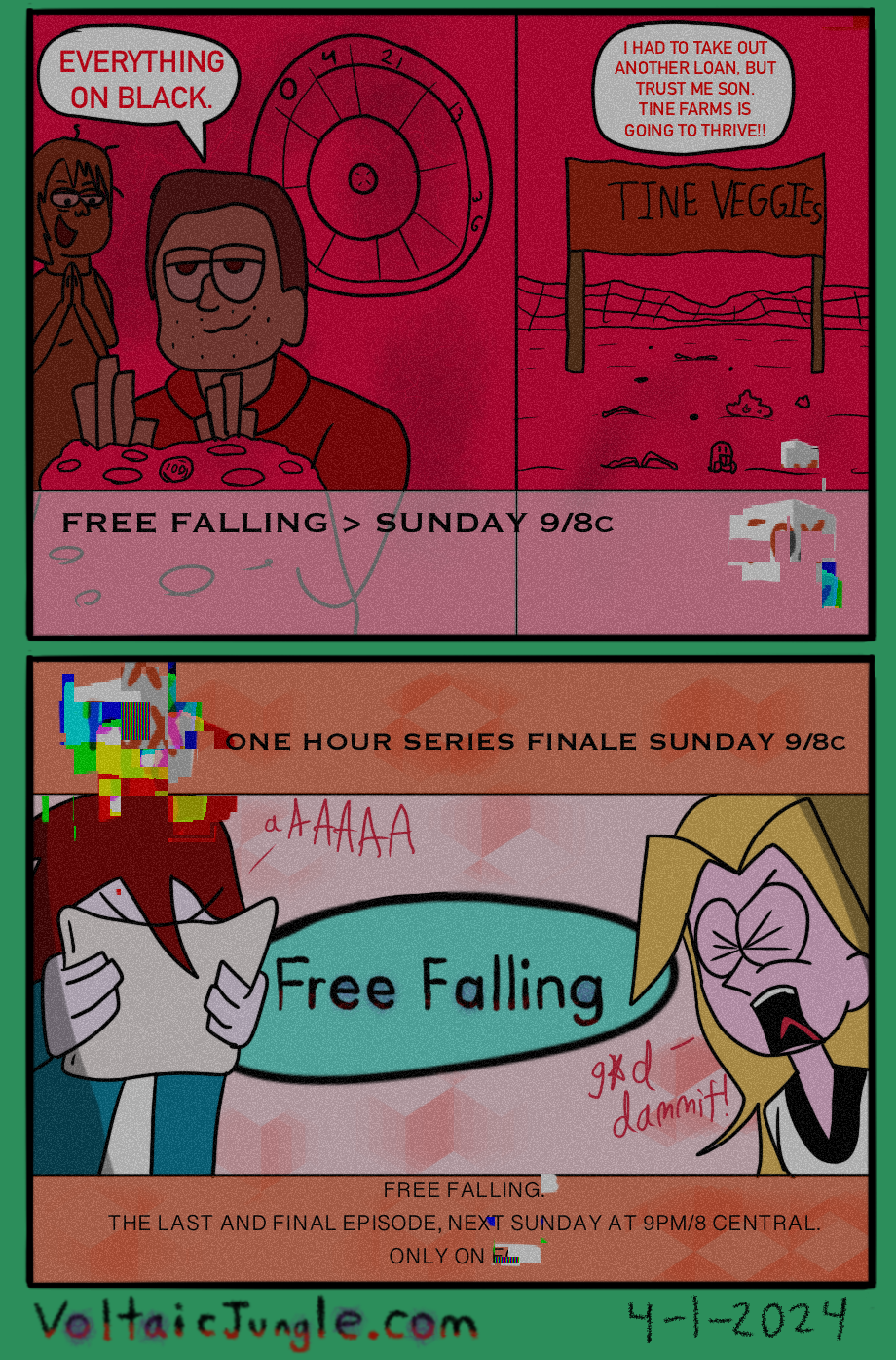The hit early 2000’s cartoon continues churning out new adventures! Rebooted back to their iconic teenage selves, our six protagonists must cope with their renewed, seemingly endless existences. Watch these poor souls continue to entertain forever and ever and ever and ever and ever... Also available at www.voltaicjungle.com/free_falling
