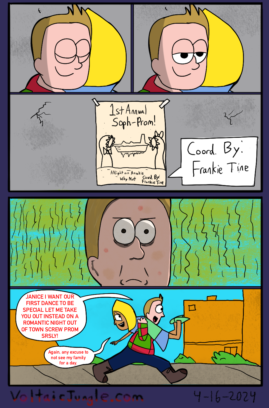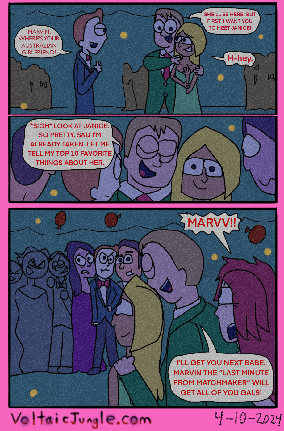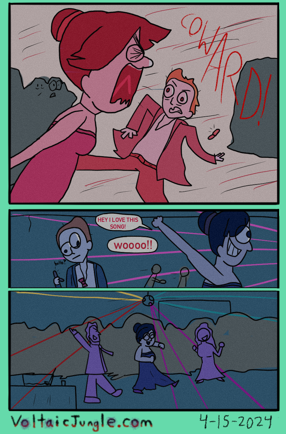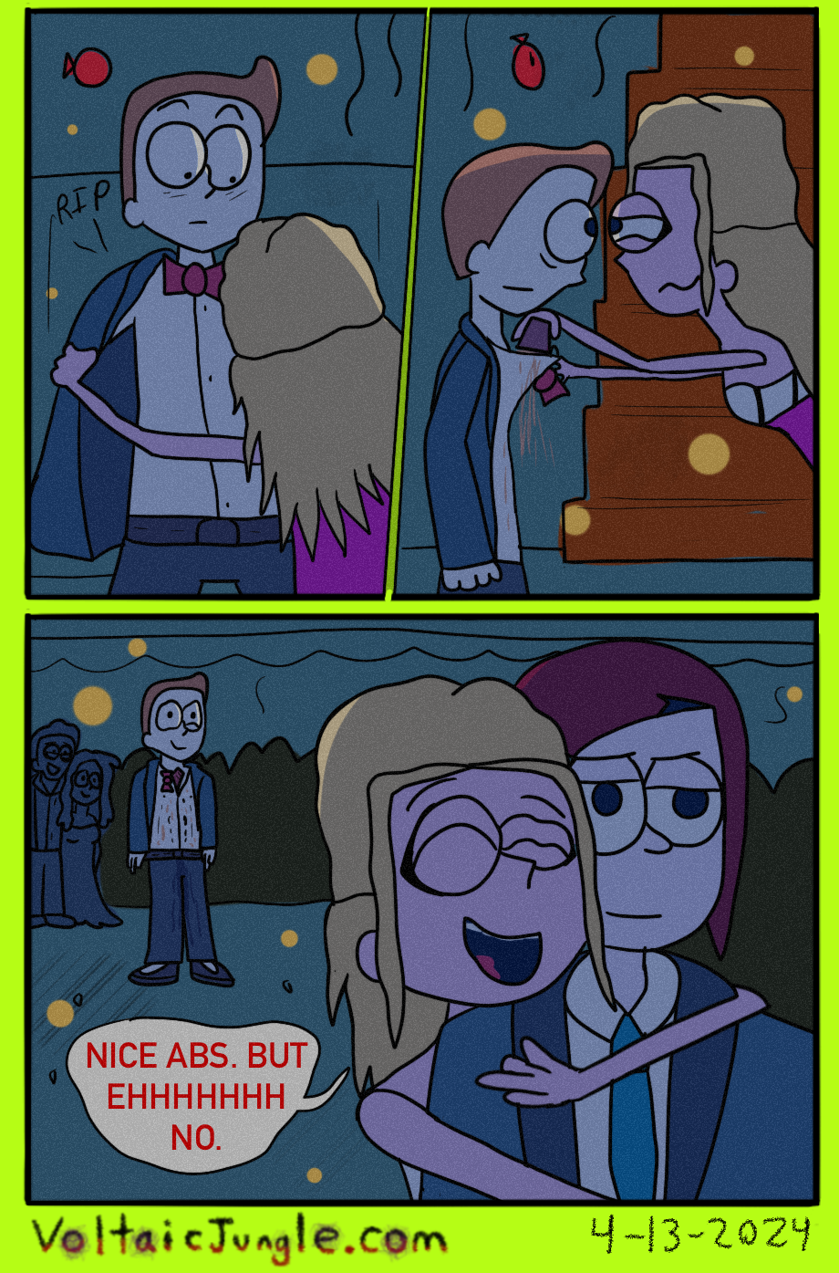The hit early 2000’s cartoon continues churning out new adventures! Rebooted back to their iconic teenage selves, our six protagonists must cope with their renewed, seemingly endless existences. Watch these poor souls continue to entertain forever and ever and ever and ever and ever... Also available at www.voltaicjungle.com/free_falling