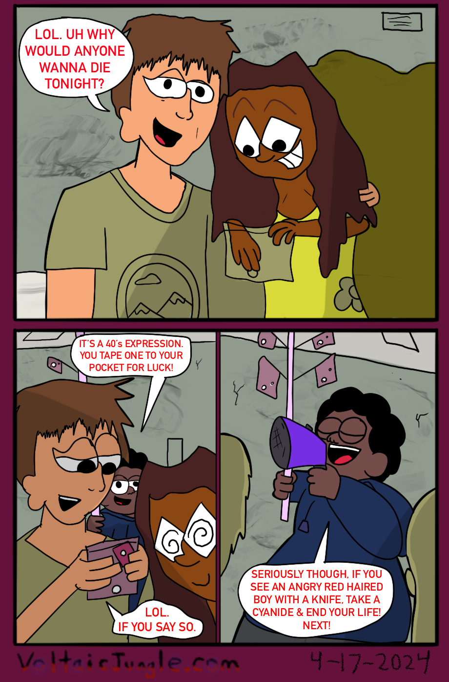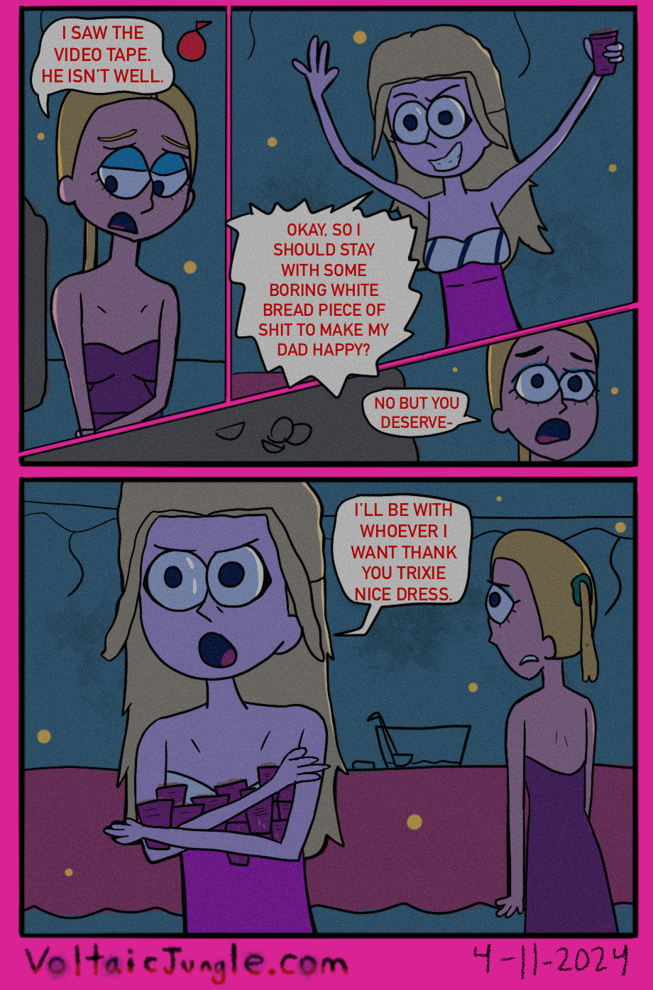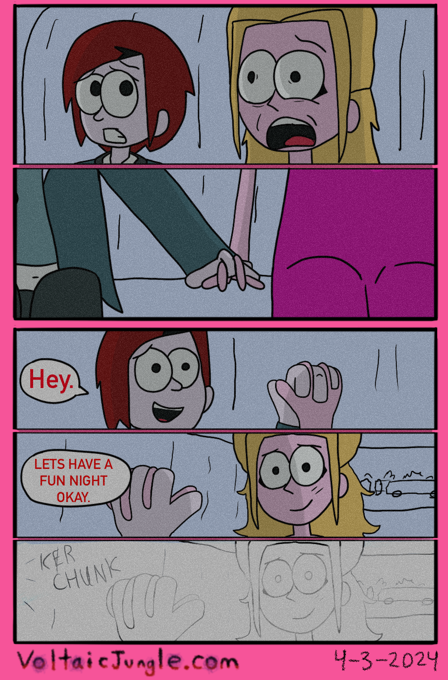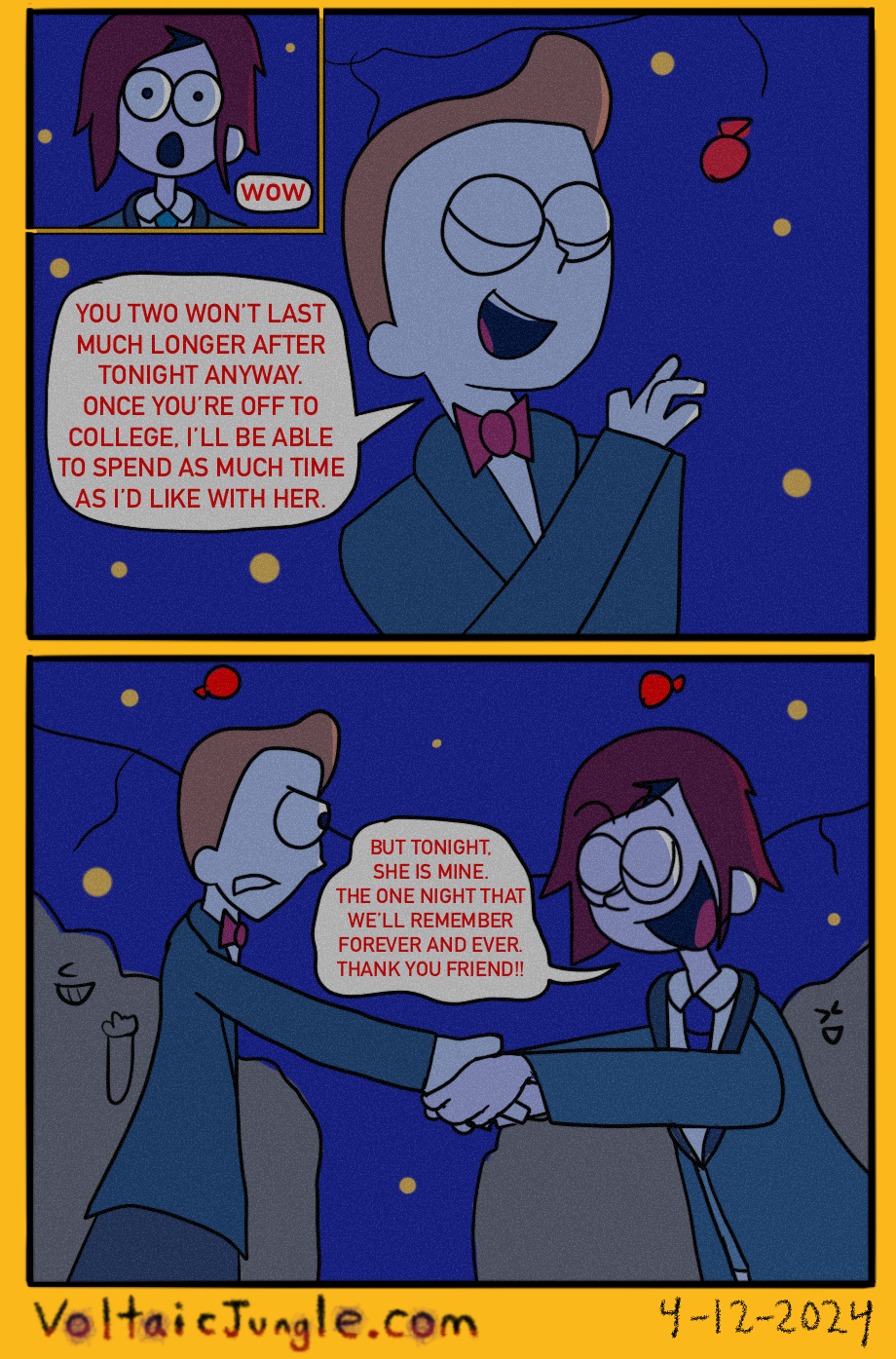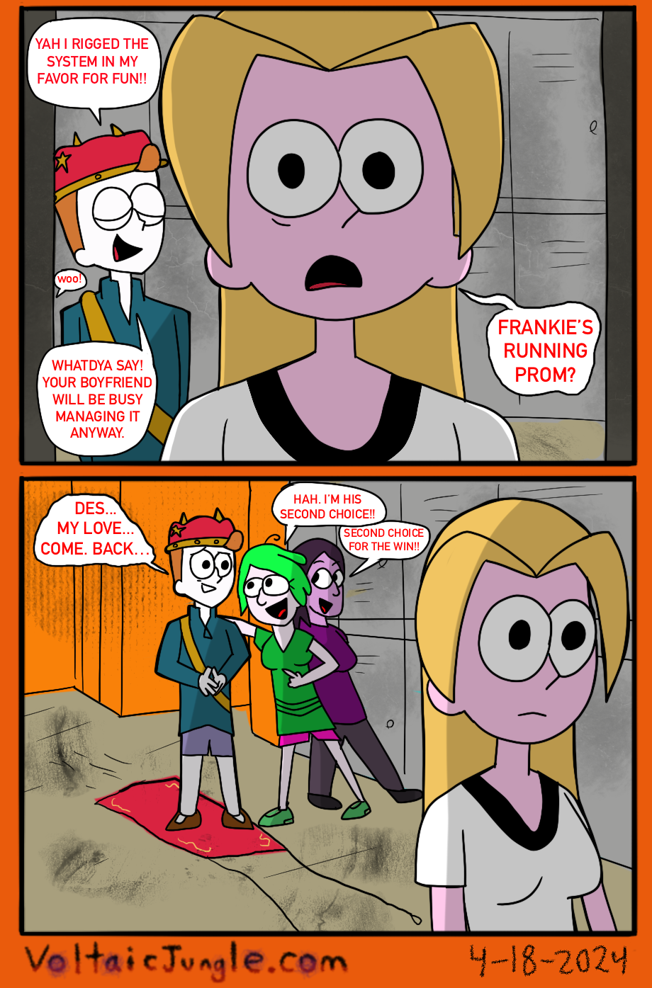 The hit early 2000’s cartoon continues churning out new adventures! Rebooted back to their iconic teenage selves, our six protagonists must cope with their renewed, seemingly endless existences. Watch these poor souls continue to entertain forever and ever and ever and ever and ever... Also available at www.voltaicjungle.com/free_falling