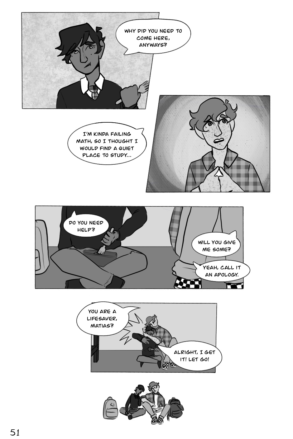 Matias Fowler, the short-tempered future valedictorian, meets James Rochelle, goalkeeper of the soccer team, in a rather bad first encounter. Feeling bad for it, Matias begins tutoring James, but James can teach him some things back.