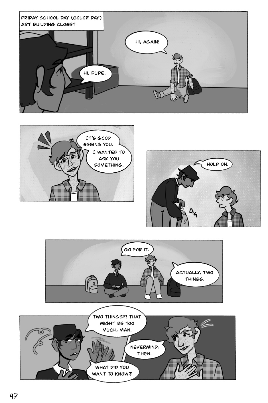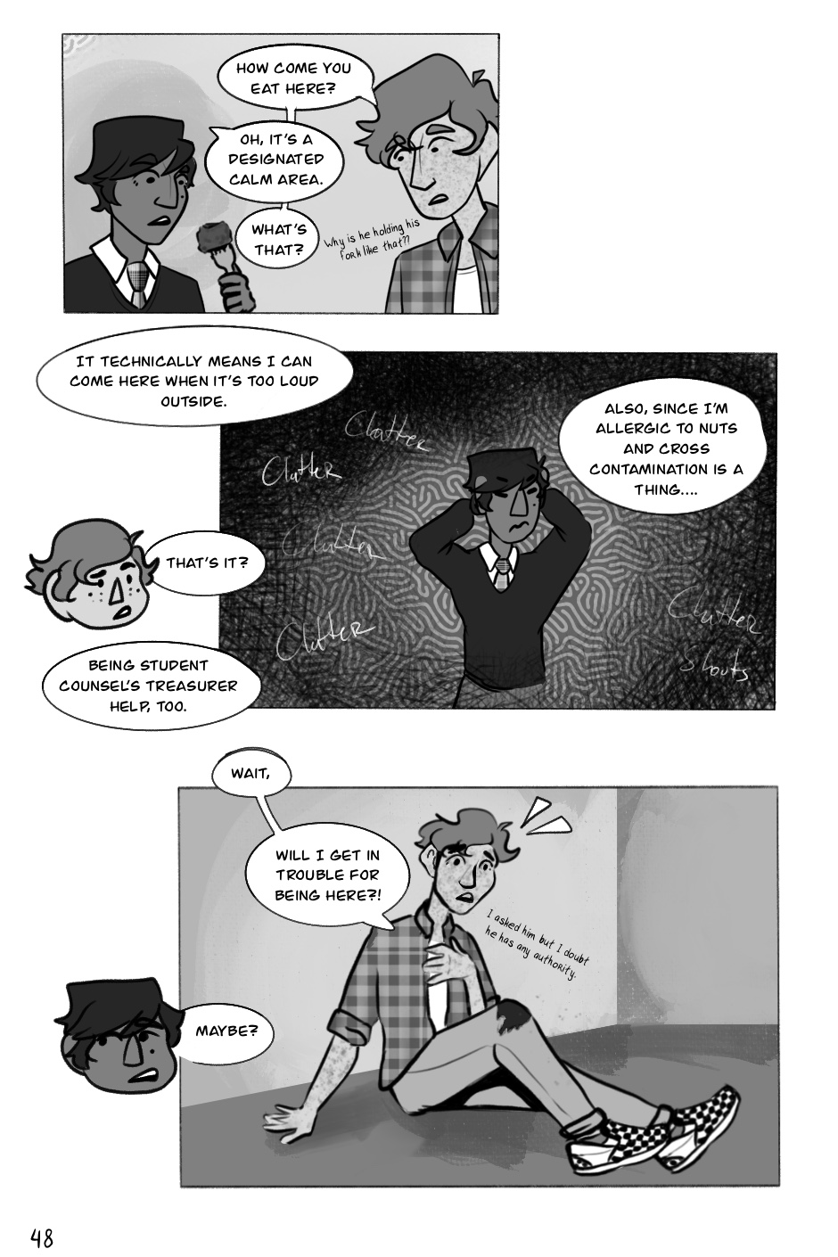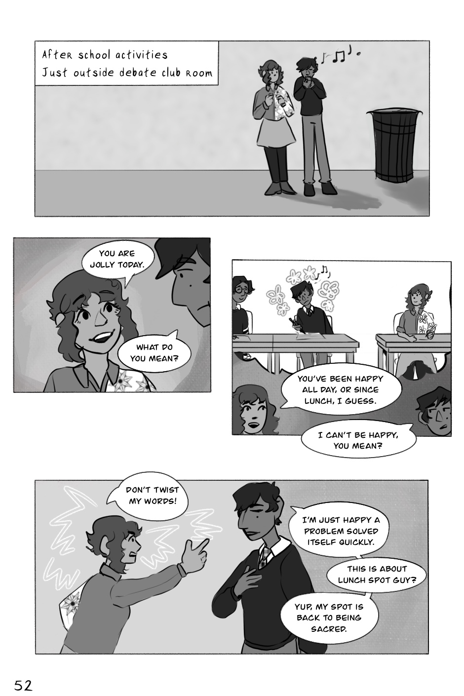 He leans on his best friend, Andrea Carbajal, who is a bit preoccupied with her own crush on the transfer student, Tasha Greene.