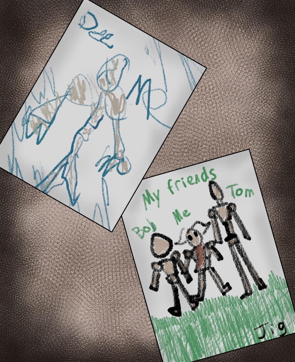 I mention this because you'll notice Dee has a much worse drawing today than her previous drawing. The real reason is that replicating a child's drawing is surprisingly difficult and I had to give it another go. The canon reason is that Jig guided her hand at first because of her silly mitten hands lol