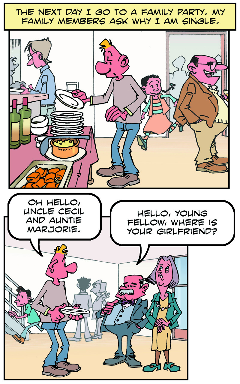 He is in search of a girlfriend. In his quest for happiness, he meets a lot of obstacles.