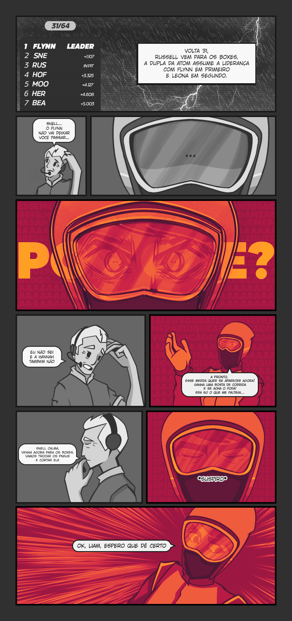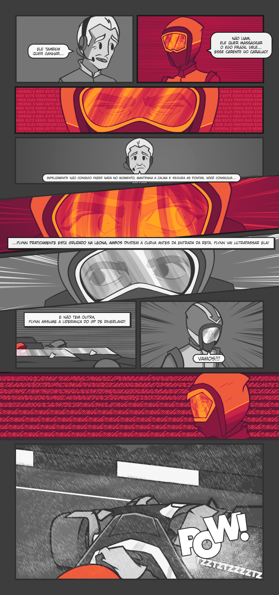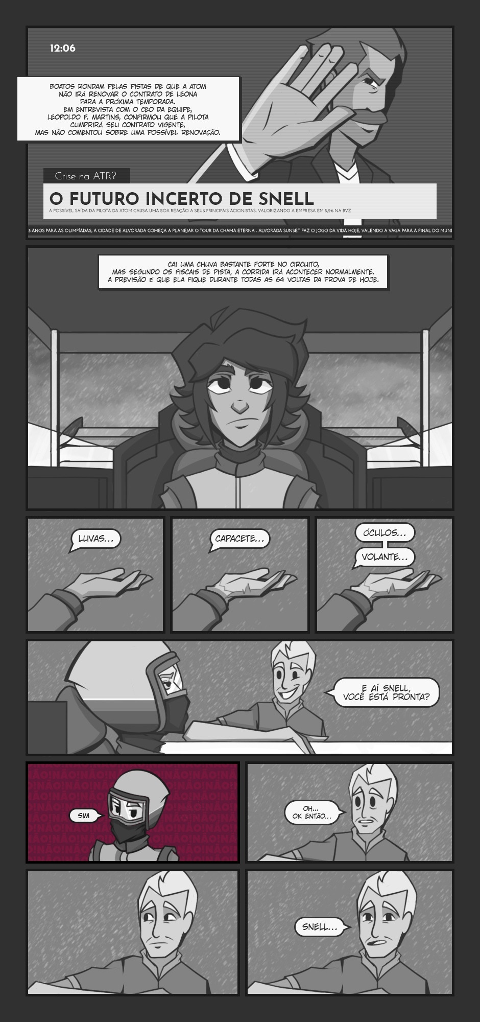 Leona Snell, é uma pilota de corrida da ATOM Team Racing, uma equipe onde juntos, compartilham a mesma cidade de nascimento, Alvorada, conhecida popularmente pelo mundo como “A Capital do Esporte”. Desde os seus 9 anos, Leona tem o sonho de ganhar a AWC e ser a primeira da cidade e do país a ganhar o maior campeonato de automobilismo do mundo! Porém... O que aconteceria se o seu sonho, tornasse o seu maior pesadelo? Onde os pilotos a mais de 300Km/h, no qual competem semana sim, semana não, tendo que dar os seus 110% sempre, podendo te matar a qualquer momento ou até mesmo, você perder o controle de tudo e acabar com a vida de alguém? E se eu disser que isso é um dos menores dos problemas de Leona? Um simples erro pode lhe custar tudo que ela construiu, é sua vida ou seu sonho, é a sua felicidade ou sua conquista, essas são suas opções no momento e a dúvida maior é, qual é a correta? Viver em paz e consigo mesma, porém, ficar se torturando eternamente pelo o que você poderia ter se tornado ou encarar todas as dificuldades da vida, sem reclamar ou pestanejar, mas, sair tão exausta, estressada, irritada, frustrada e acabada, fazendo te questionar se todo o esforço valeu a pena no final?