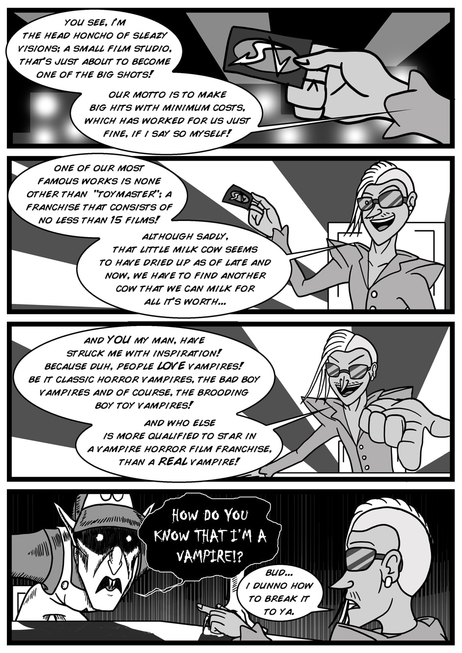 Once a mighty vampire count in the land of Romania, Vasilescu is now a janitor in an unpopular diner, finding himself trapped in an unfullfilling unlife in Hollywood, Los Angeles.