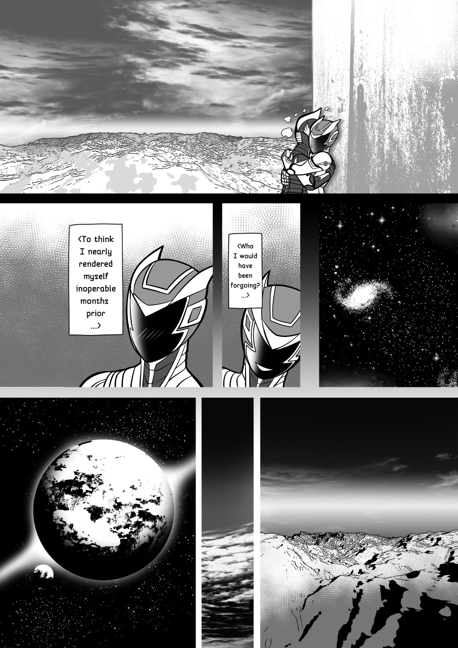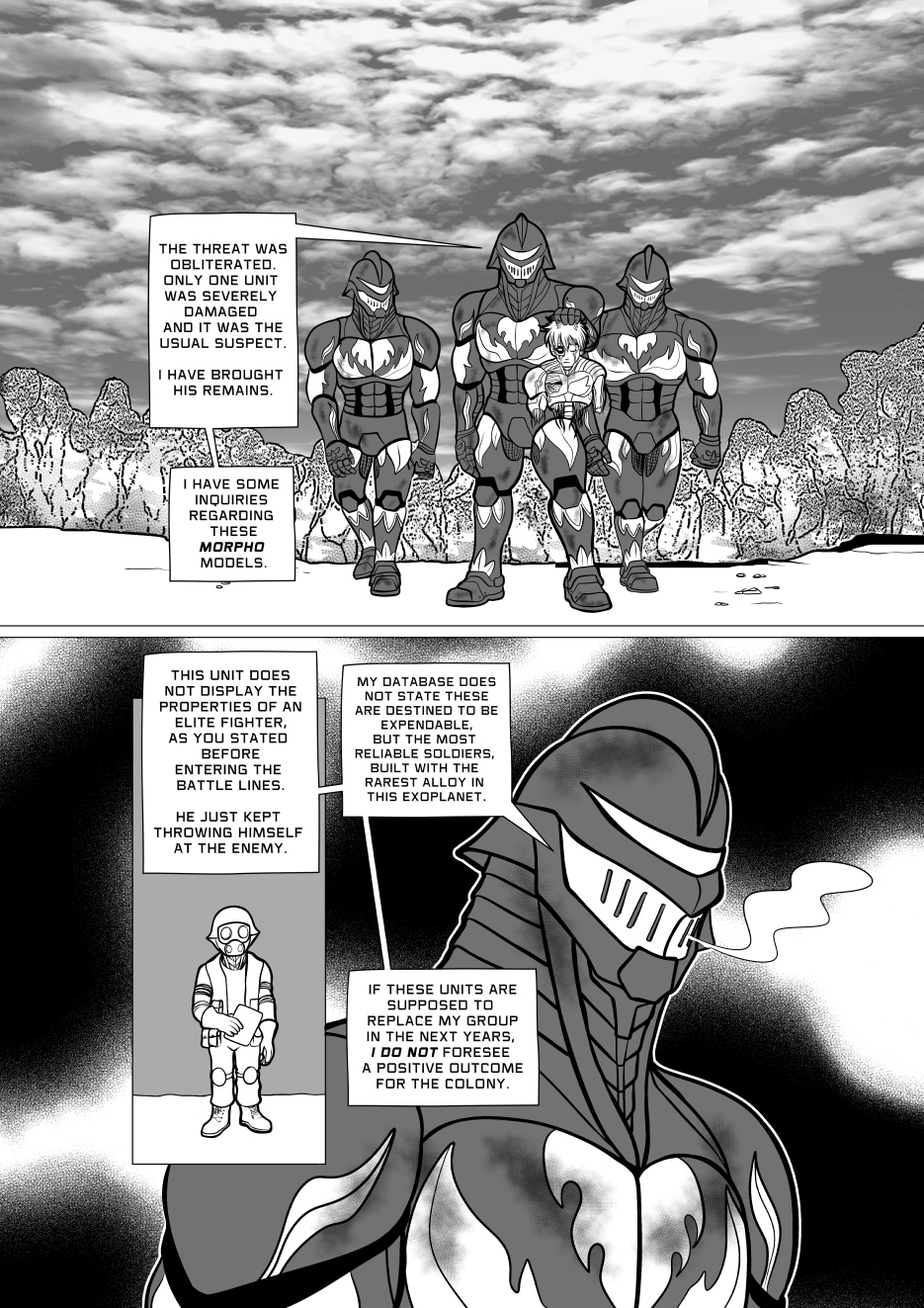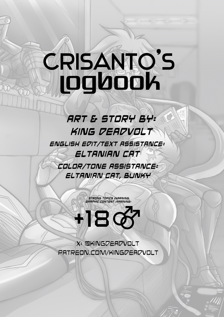 Crisanto is a cyborg soldier created to defend a newly stablished off-world colony. However, more than battles he yearns of companionship, concept that in his world is not embraced. Then he meets Brant, a cyborg who has just arrived from a scouting mission on Earth, and recently got transferred to the same base he is in. They get to know each other and their relationship develops.