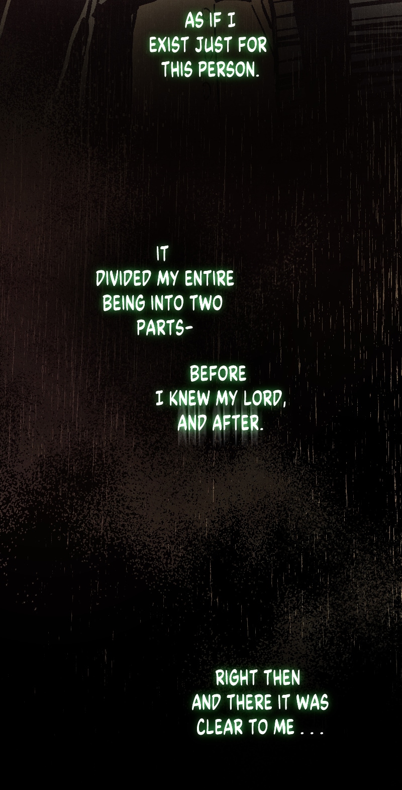 Immortal Lord Katrus reveals his lustful side to his knight, Duke Cedar, wanting to start a "no strings attached" relationship. However, Cedar is conflicted between his feelings of adoration for Katrus and Katrus' masochistic preferences. How do you love someone who doesn't love himself?