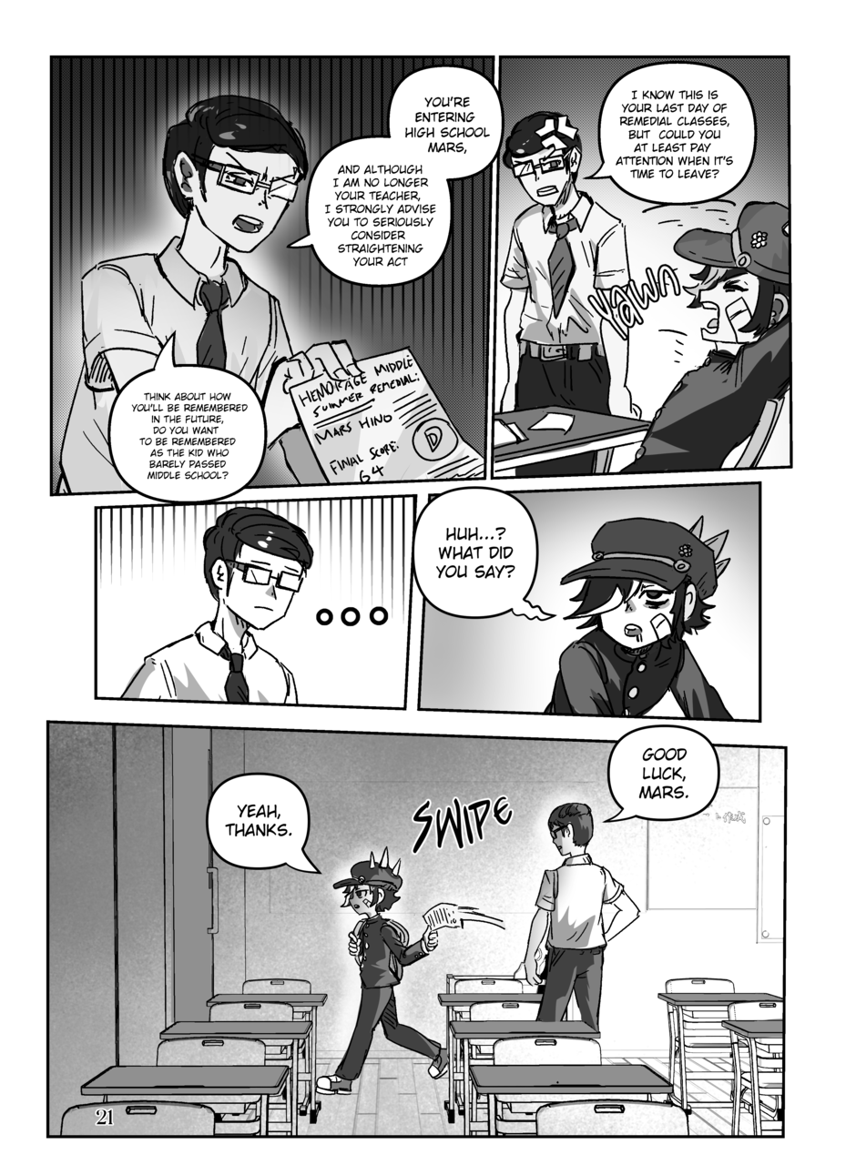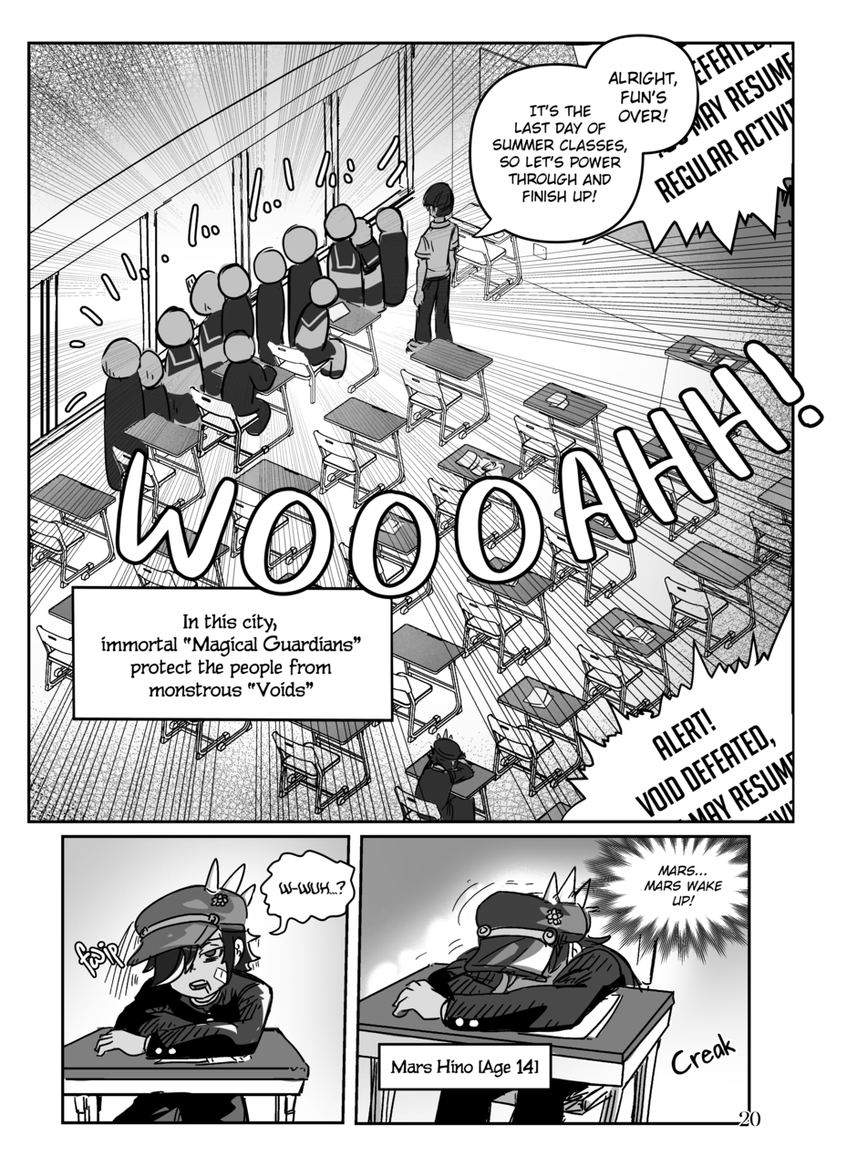 For the last 500 years, New Pantheon City has been a battleground between immortal Magical Guardians and the "Voids" that seek to destroy them and other innocent civilians. Mars Hino is a middle-school outcast. Because of his reputation, violent tendencies, and lack of social finesse, he has found himself alone entering high school surrounded by people who hate and fear him. That is until the day he met the hero of the Blunbell district, Scarlet Star.