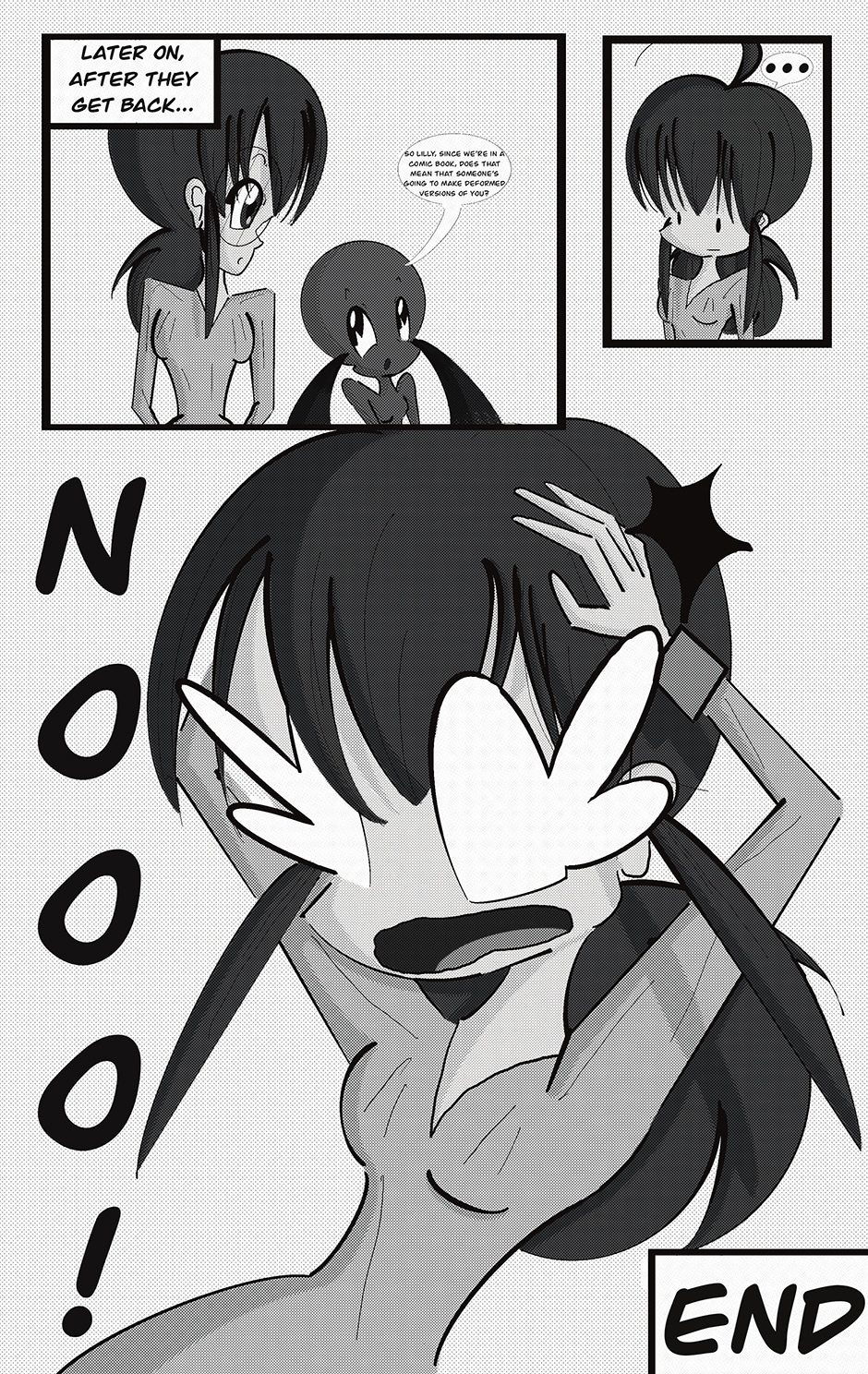 As you can see, there have been many improvements made since the last issue of Lilly and Lumi. I am very grateful for the advice and support I've received from Jim Shooter, Michael Watkins, and Mr. Picklesimer. I'm always looking to improve my writing and drawing, so please feel free to comment with any constructive criticism. Thank you!