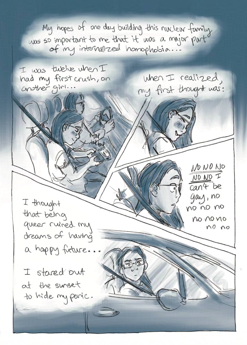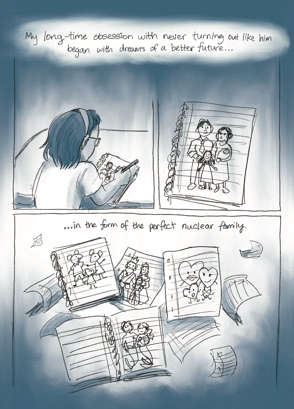 A graphic memoir that features Inkwell, a character who represents the most emotional, traumatized, and sometimes subconscious parts of me. With him, I delve into my tumultuous relationship with my father and the impact of a painful break-up, exploring how the past influences my current struggles with moral perfectionism, care, and activism.