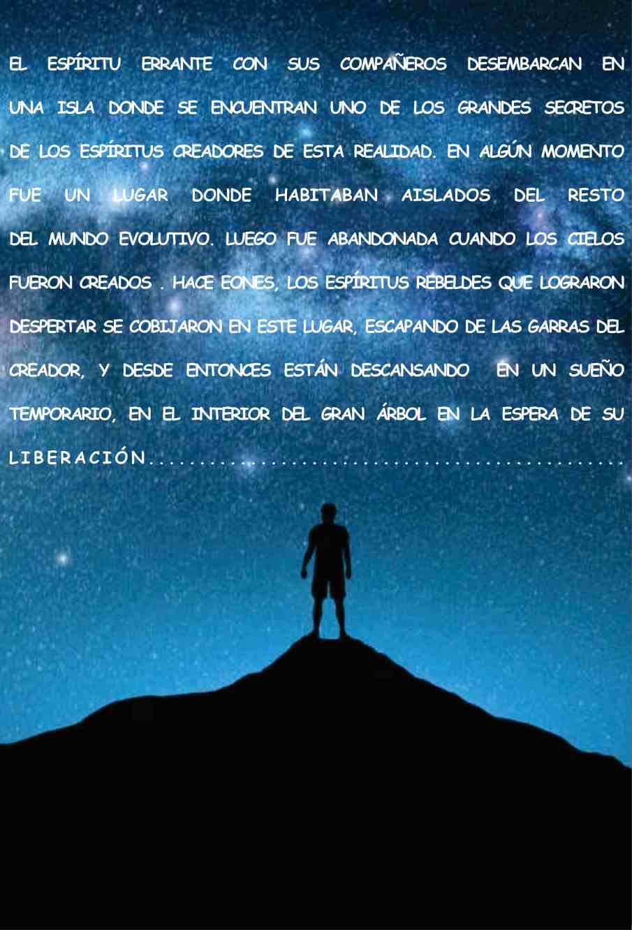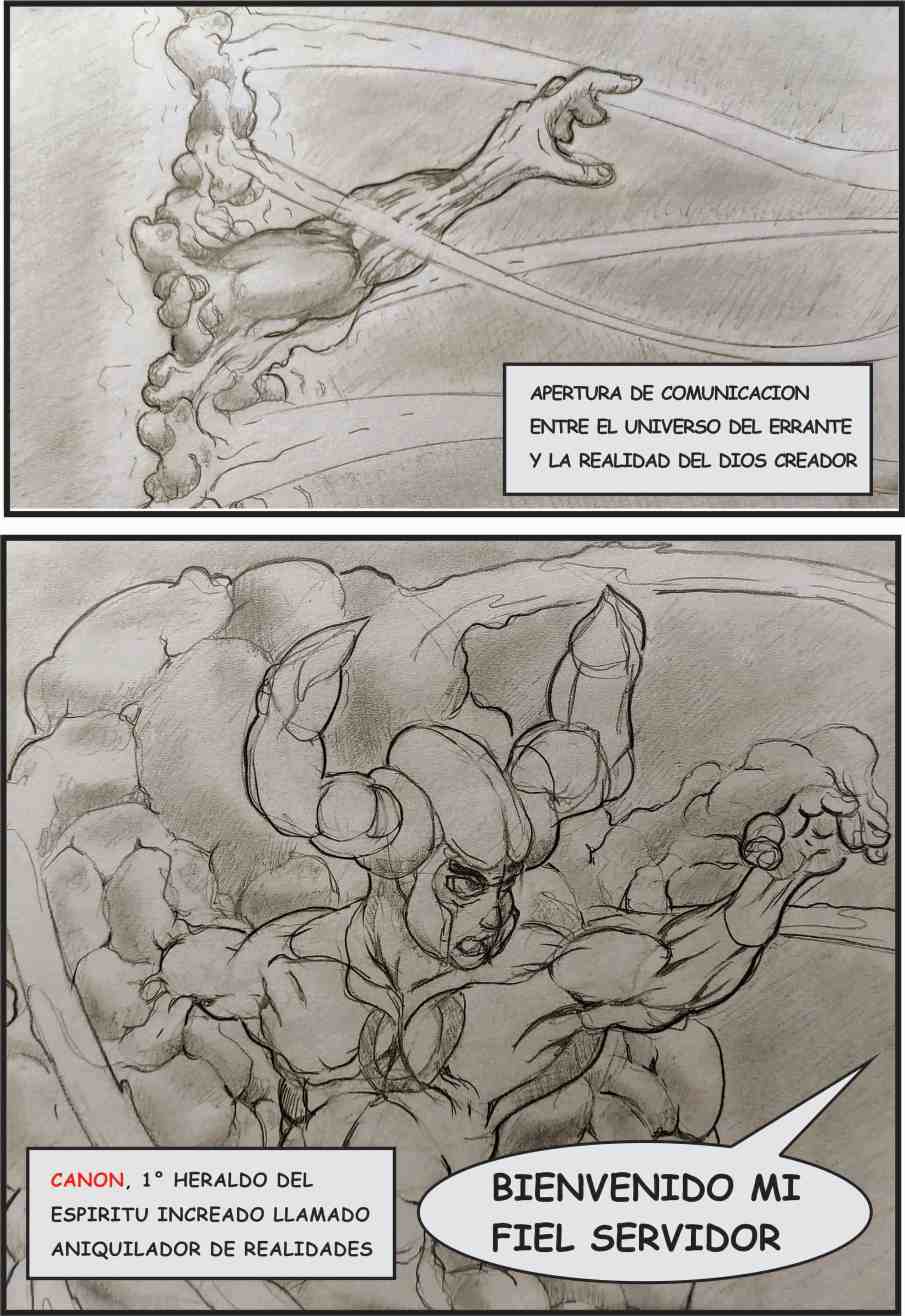 Mas allá de las creaciones existe un mundo del cual provienen poderosos seres llamados “dioses”. Muchos de ellos son creadores, otros son bravos guerreros inmortales que emprenden batallas, otros simplemente vagan de creación en creación. Uno de ellos, tomo parte de la increación y organizo el átomo grávido, elemento fundamental del mismo. Para tal tarea, tuvo que entrar en una especie de sueño eterno, llamado “estado inconsciente del creador o ensoñación”. Se encargó de reorganizar el átomo grávido por medio de su esencia vital, impregnando ese pequeño sector de espacio increado. Su limitado poder, solo pudo crear un pequeño sistema cerrado con un fondo ilusorio, reflejo de otros mundos, donde sus creaciones nunca podrán llegar (ya que no pueden sobrevivir fuera de su fuente creativa sin ser aniquiladas). Su fuente era tan mediocre y limitante, que no logro despertar la conciencia de sus creaciones inteligentes, impidiendo su “evolución dentro del KARIOTIPO” que el Dios Creador impuso a su obra. La llama interna, llamada alma (sustancia que constituye parte del ente creador), era incapaz de salir del estado larvario y menos impulsar la evolución biológica, que este SER divino quería lograr. Al llegar a su límite creativo e incapaz de dar un aliento evolutivo, hizo un pacto con otros dioses de la increación, que se ofrecieron libremente ayudar personalmente para que su obra pueda florecer y seguir su ritmo.