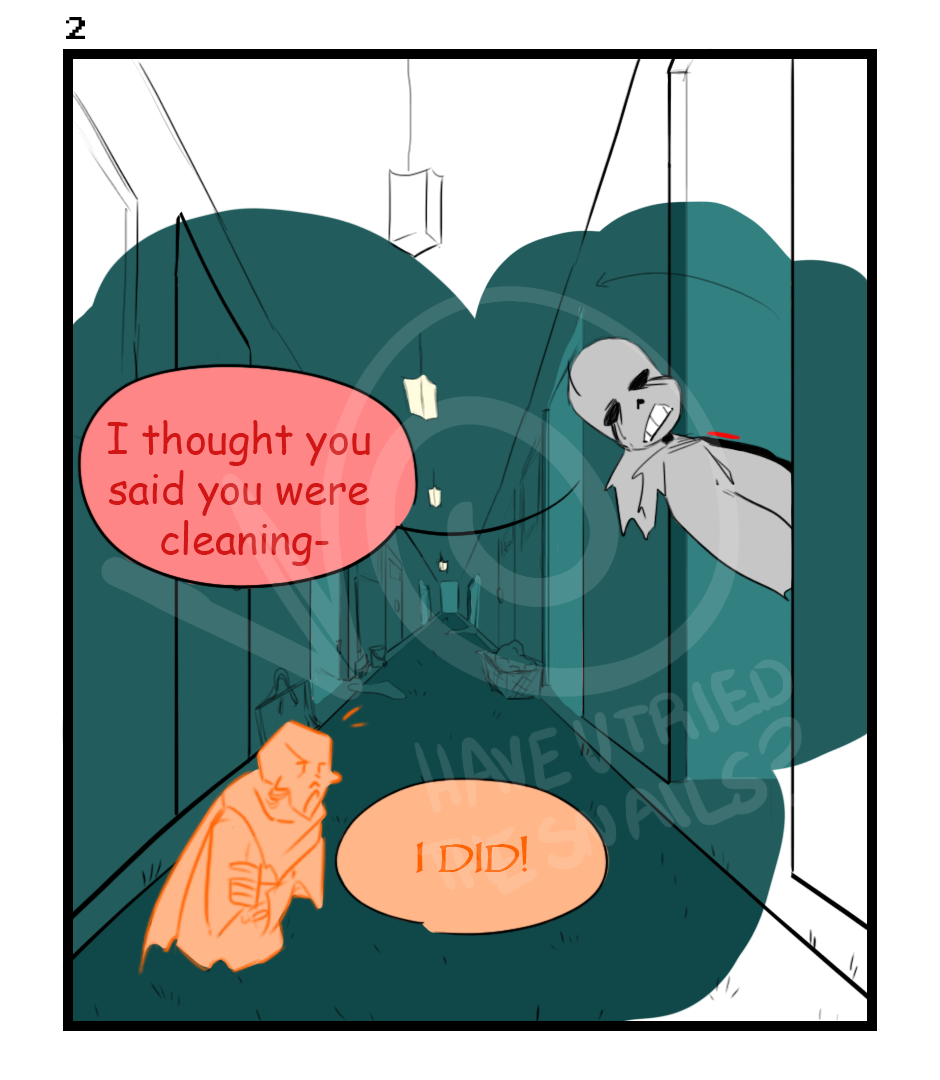 I like to think that Puppet/Papyrus cleans up after the other Sans's and does chores around the castle to keep himself busy- just because he's part of a murderous team of Sanses doesn't mean that he has to be lazy.