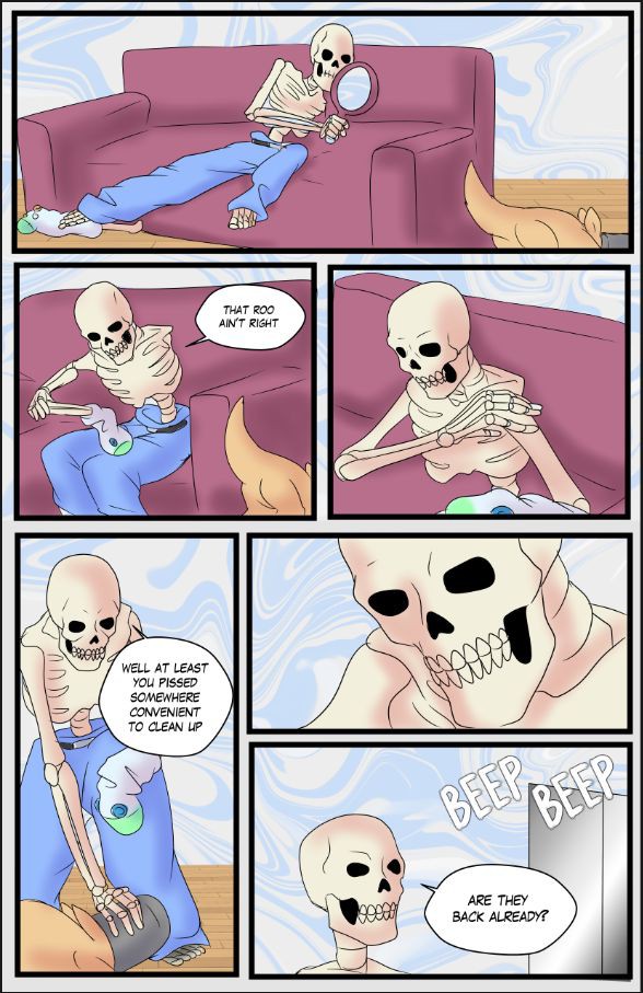 #kangaroo #Skeleton #undead #lazy #babysitter #couch #lazy_day