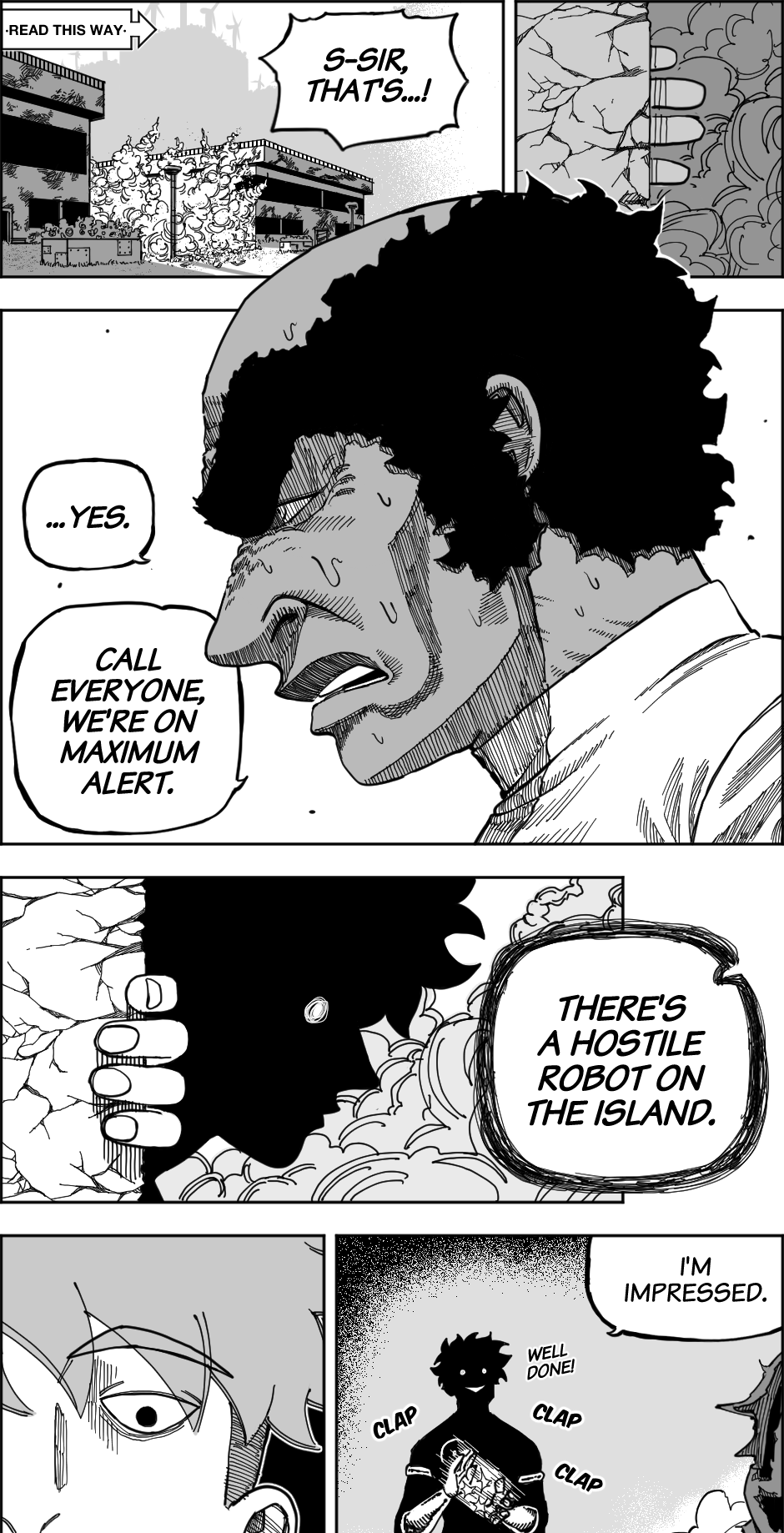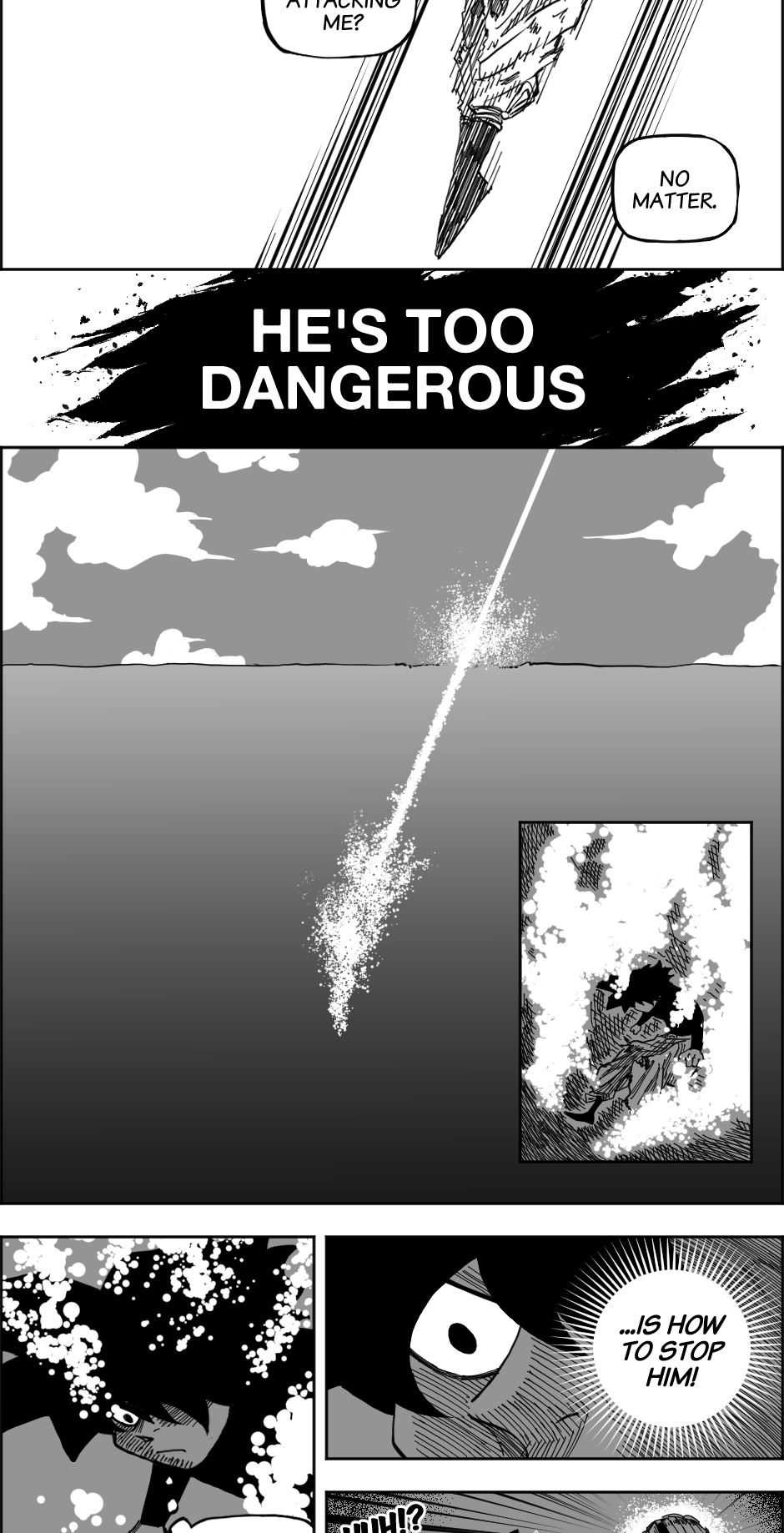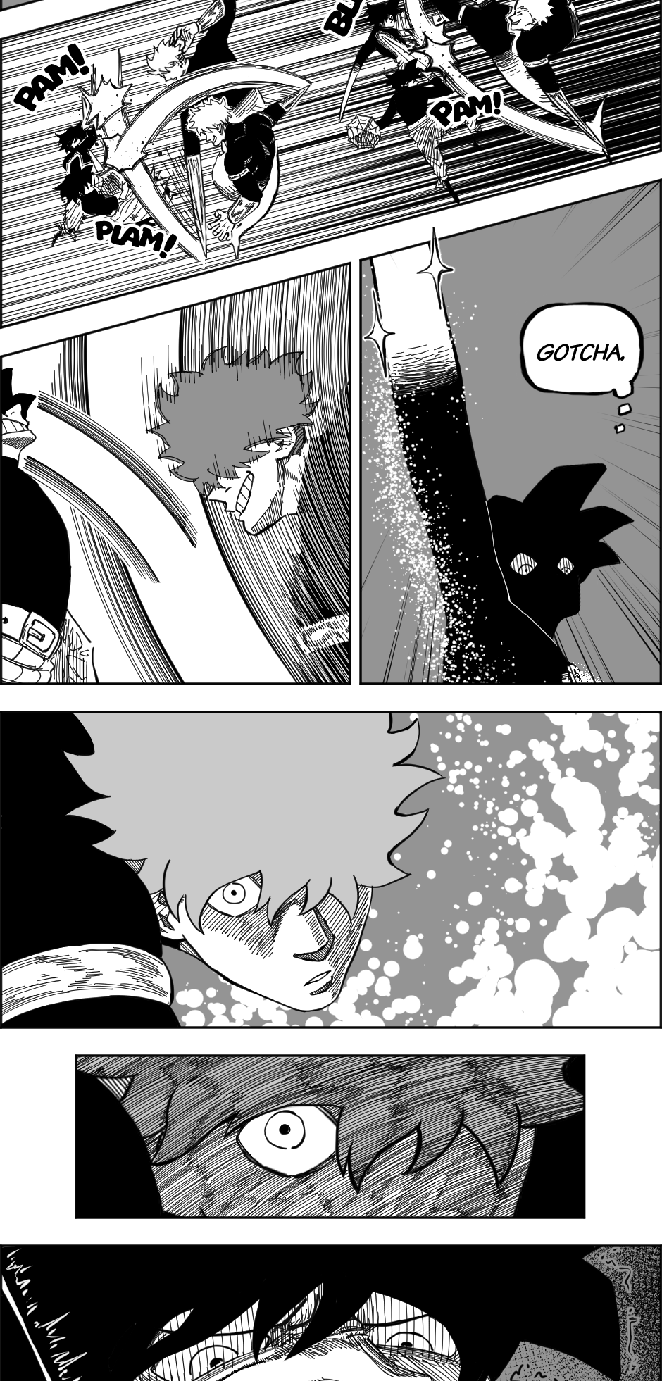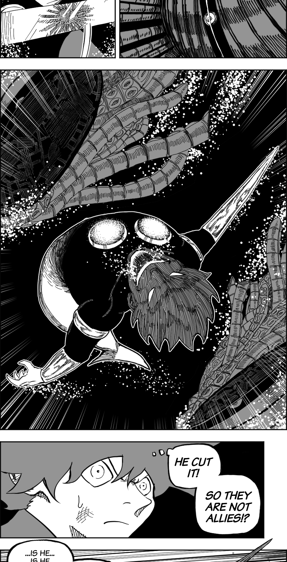 The grey undertones do help to separate the action more, I like it, especially since it contrasts with the water depths they are in. The final panel is pretty cool too!