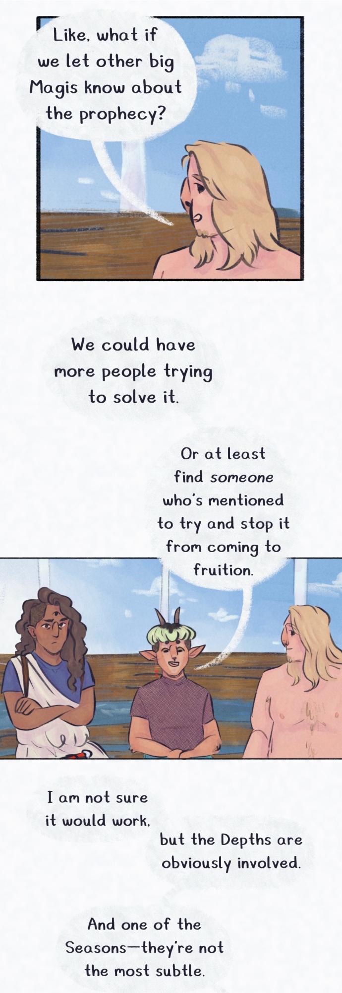 The Seasons are a mess. Kesa (Summer) never takes a break—even when he’s not in charge. Syksy (Autumn) has had feelings for two of his centuries-long roommates. Talvi (Winter) has a quick temper and is typically hiding in her room. Kevat (Spring) is doing her best to keep everyone from strangling each other. How will the others handle themselves when Kevat gets hit with a sleeping curse? What will they do when they find out there are bigger things at play?