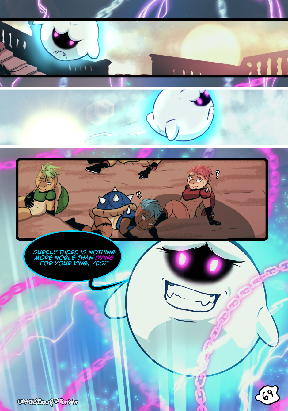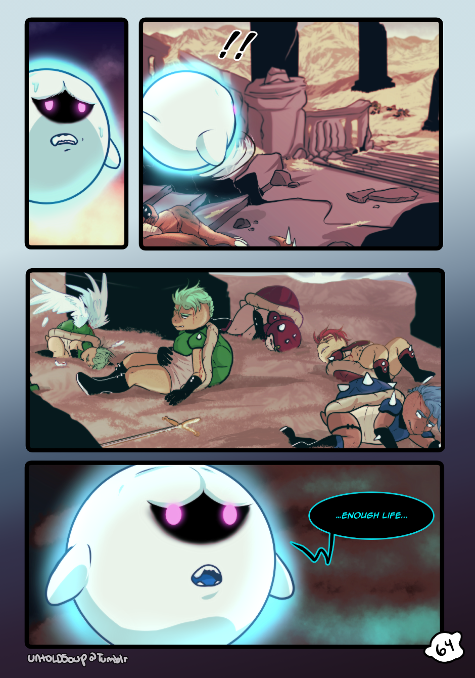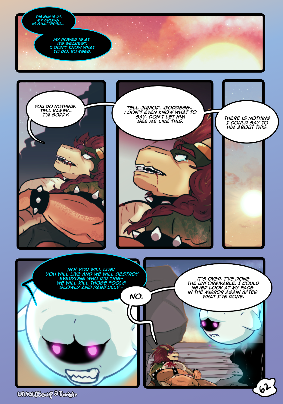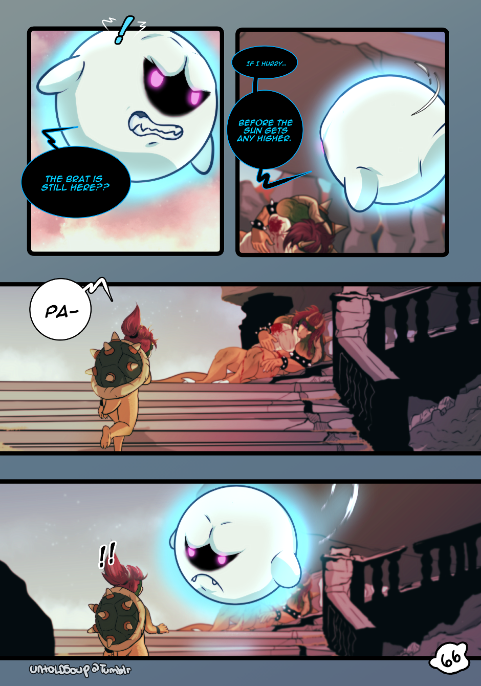 Defeated by Mario, Bowser realizes the cost of his obsession too late. King Boo, however, is not willing to let go so easily.