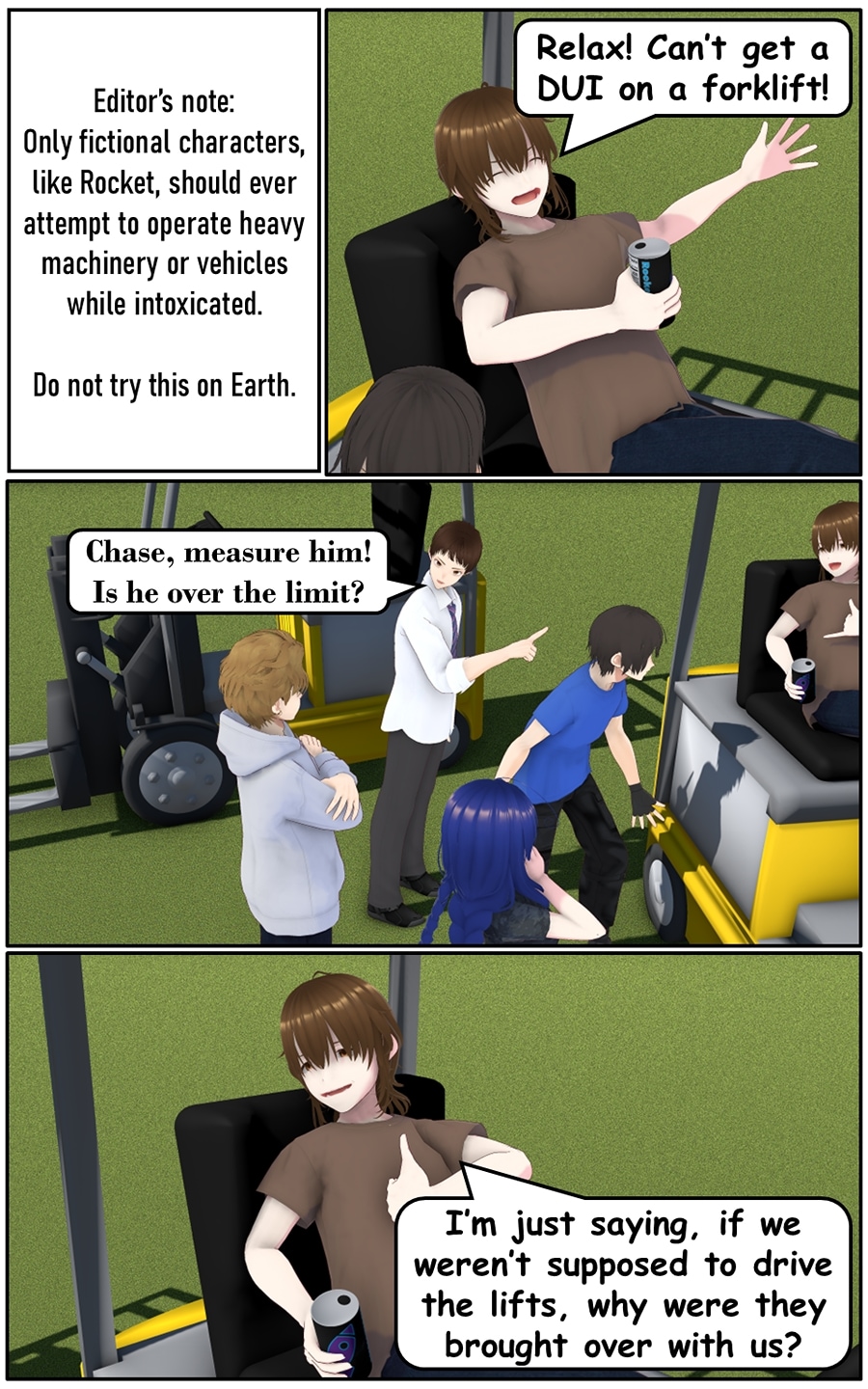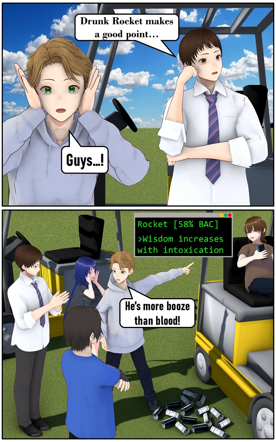 Four forklift operators, the boss and their forklifts get transported to another world! Their new powers include turning anything into alcohol or mean words now deal both emotional AND physical damage! Written by real-life forklift operators, this comedy-first, isekai-second series ignores things like “points” or “levels” to focus on delivering laughs a fork-load at a time. Also, there’s cat-girl maids.