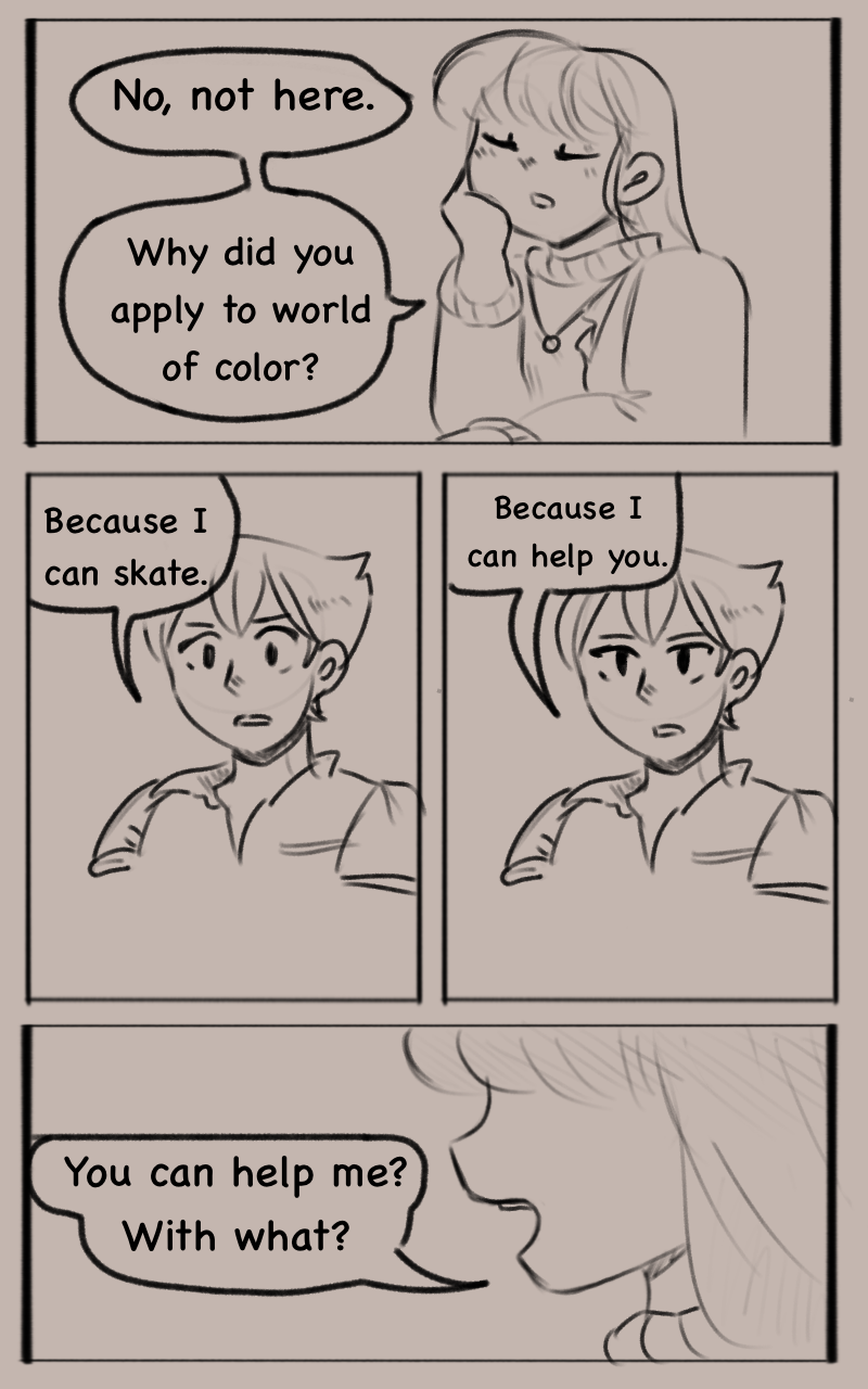 A shy girl, ORANGE, joins WORLD OF COLOR, a group that will learn to ice skate together. Her teacher is BLUE, an accomplished ice skater that Orange looks up to. Can Orange keep up with everyone else? That, plus YELLOW, CYAN, PINK and GREEN, will all have to get along in order to create a wonderful live show.