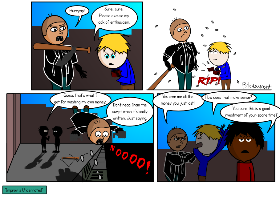 Was this one too meta? Norwegian version: http://saraenlivsfare.nettserier.no/2014/11/15/ French version: http://blekksverd.deviantart.com/art/On-sous-estime-les-avantages-de-l-improvisation-10-604546810